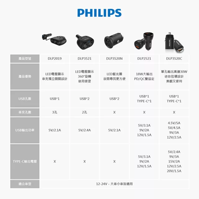 【Philips 飛利浦】36W Type-C PD+QC智能車充(DLP2521)