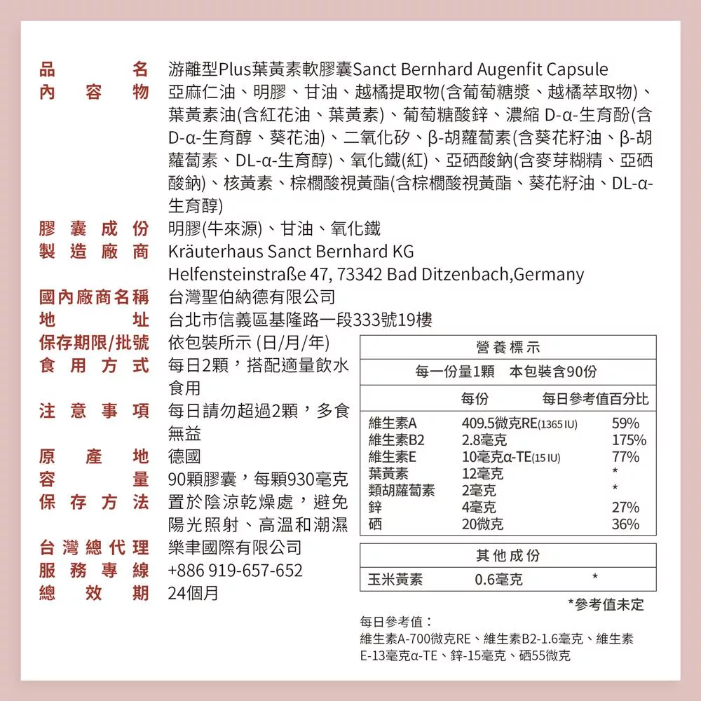 聖伯納德 Sanct Bernhard 游離型葉黃素軟膠囊 (90粒/罐)x2瓶 山桑子 歐洲藍莓-原 德國百年草本 (組合價1350元)
