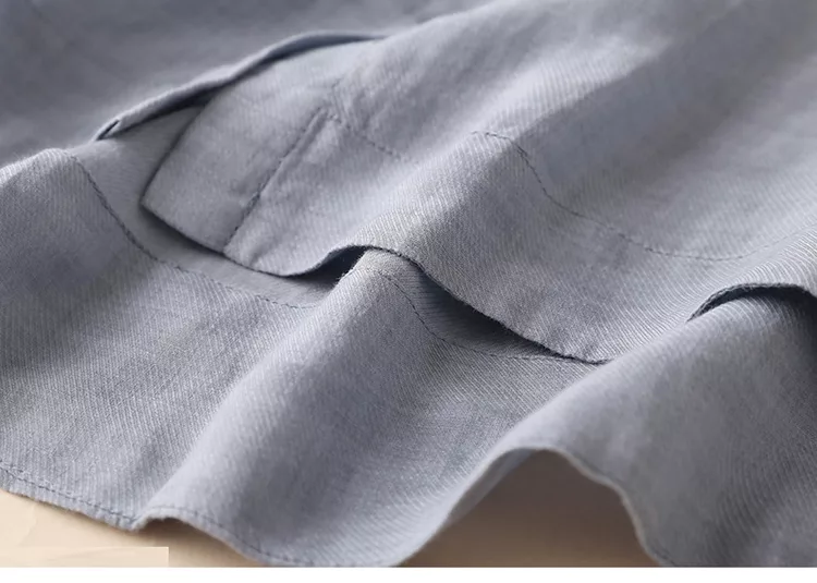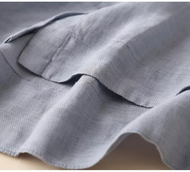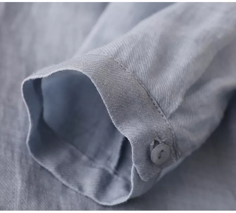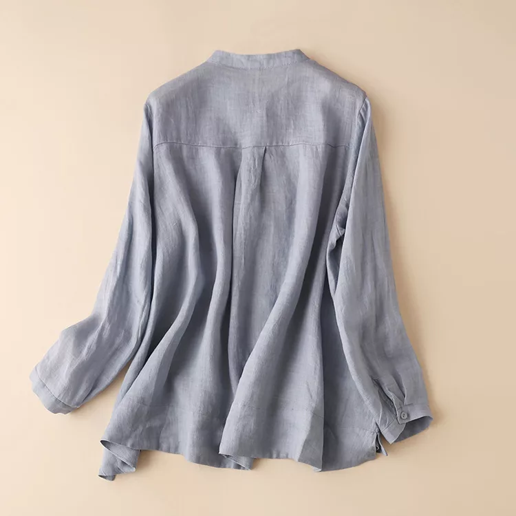 【慢。生活】苧麻棉襯衫立領七分袖襯衫寬鬆大碼防曬衫 M-L 8220 M 淺牛藍