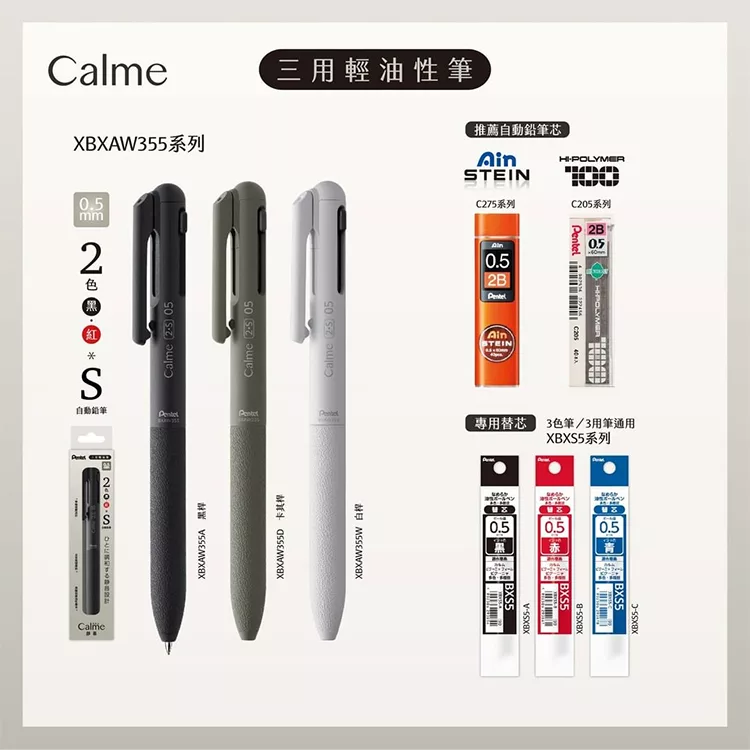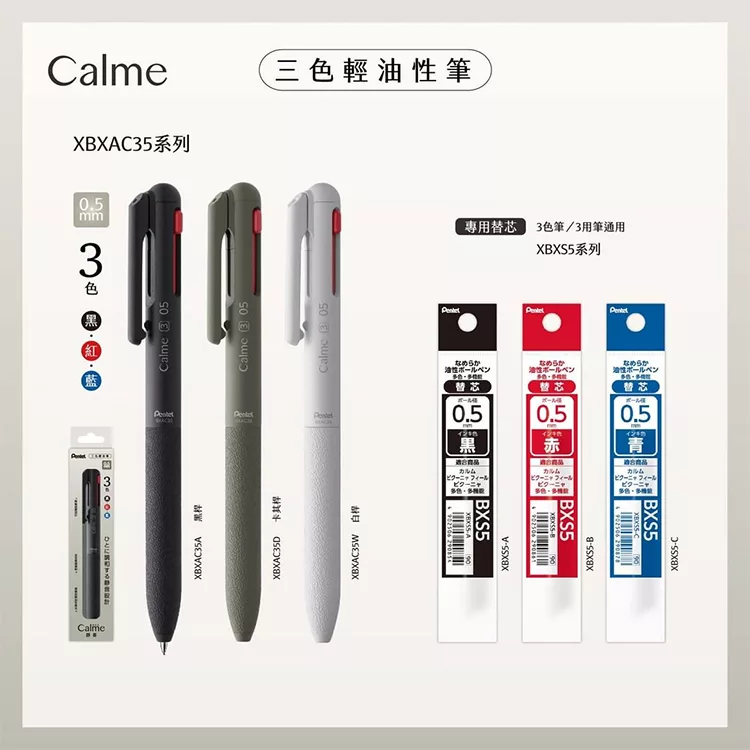 PENTEL Calme 靜暮三色輕油筆 0.5 黑桿