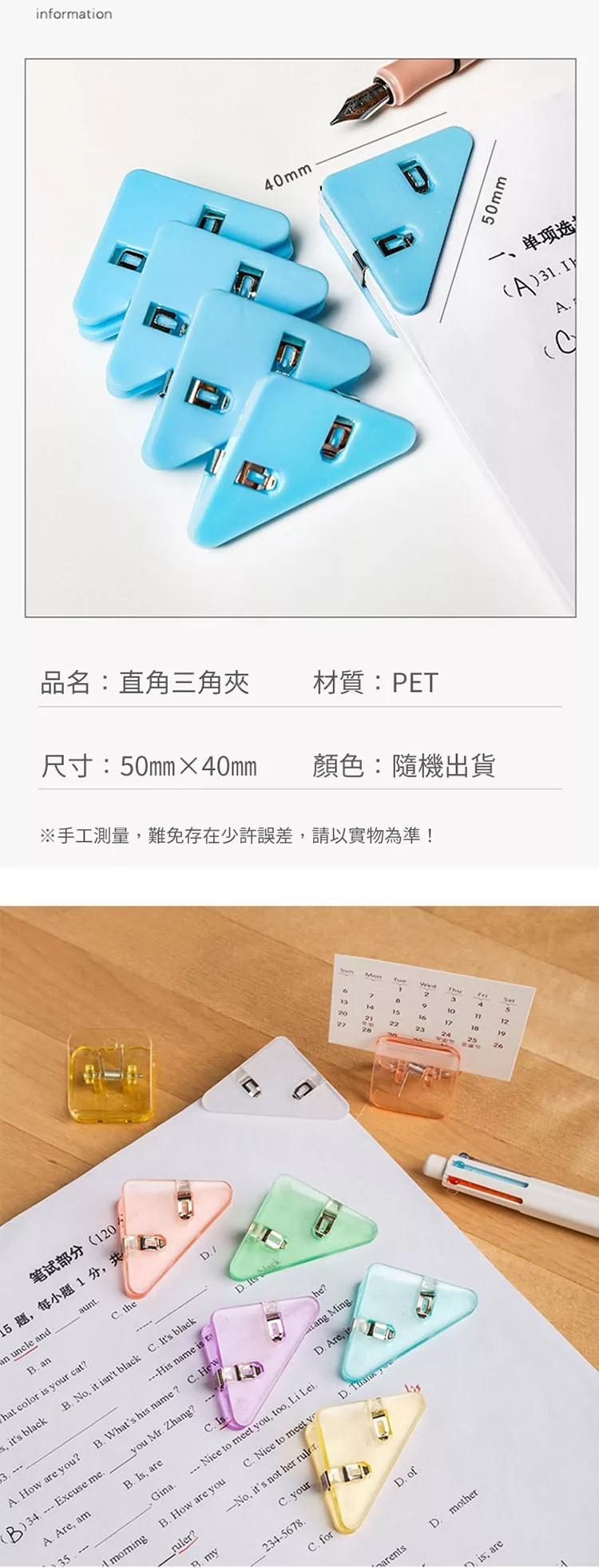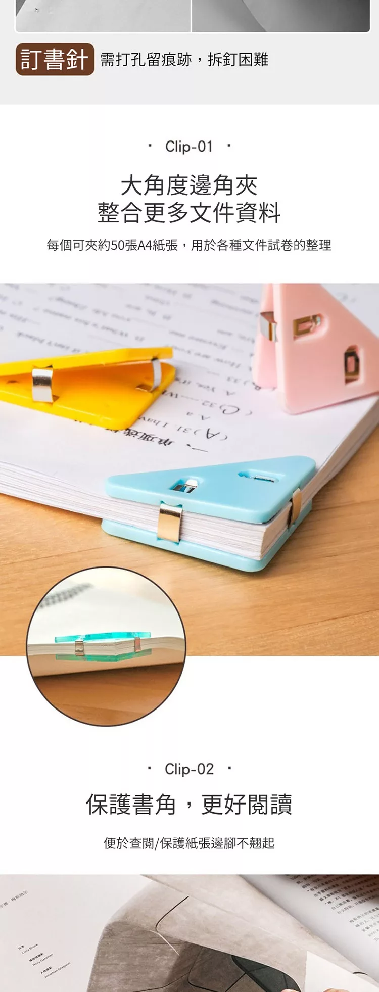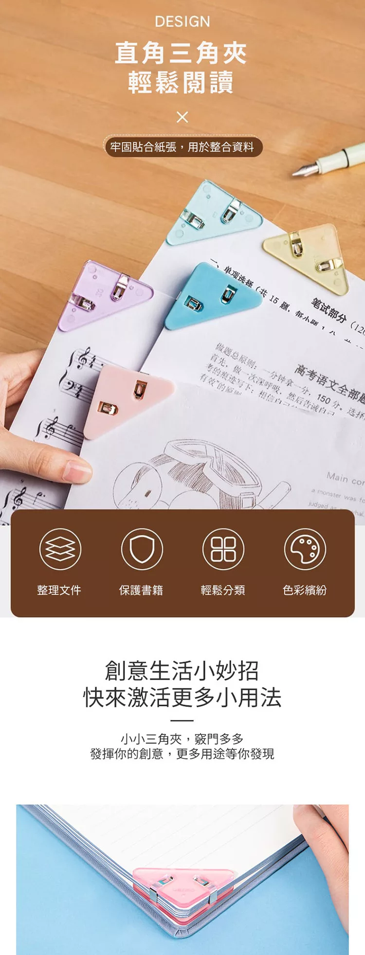 直角三角文件邊角夾/收納夾/書籤 辦公室用品 文具用品 夾子 文件夾 書夾 開口夾 文具 辦公用品 文件收納 (10入裝)