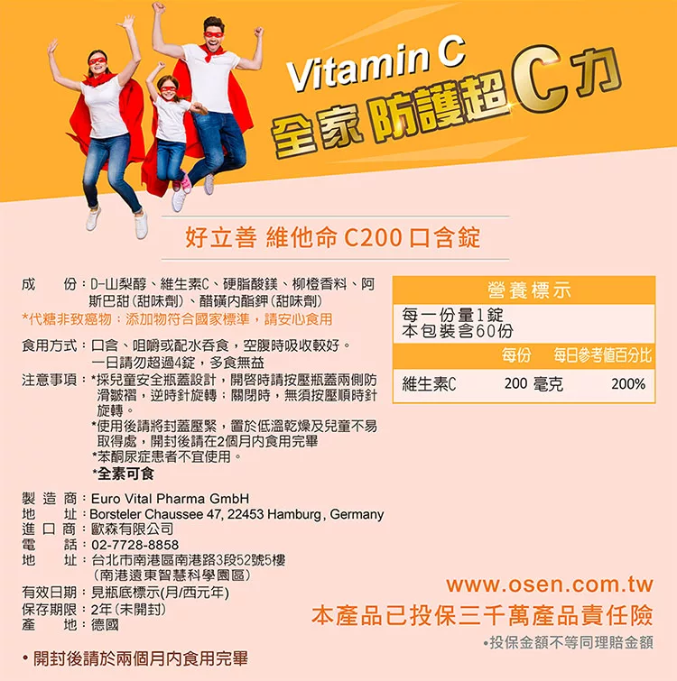德國 好立善 維他命C口含錠 五入組(60錠x5瓶) 商品效期2026/10/31 (組合價710元)
