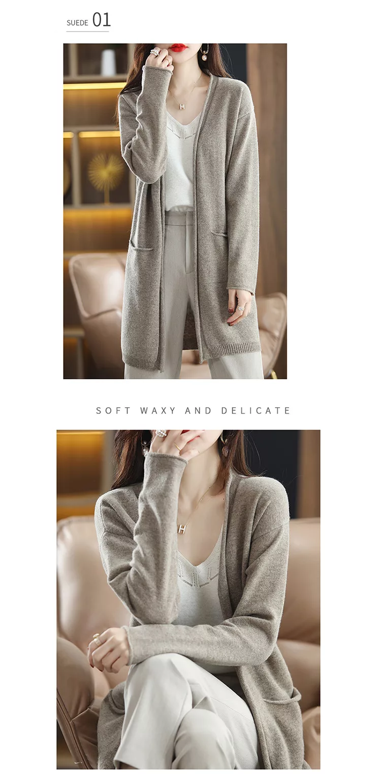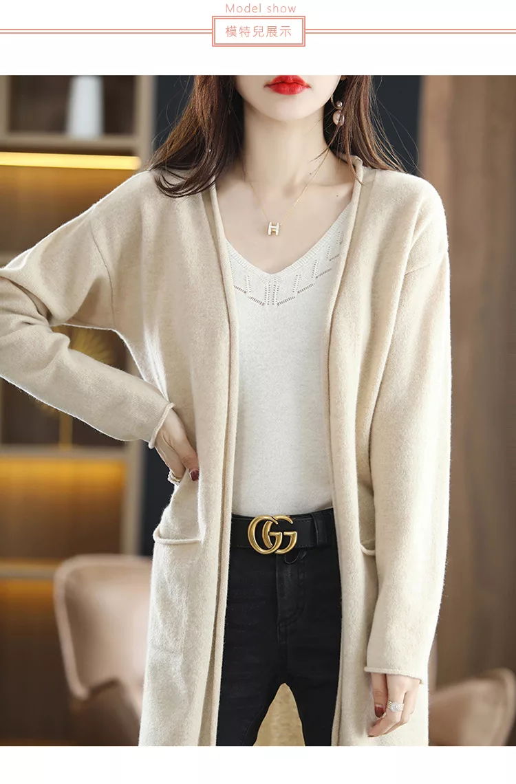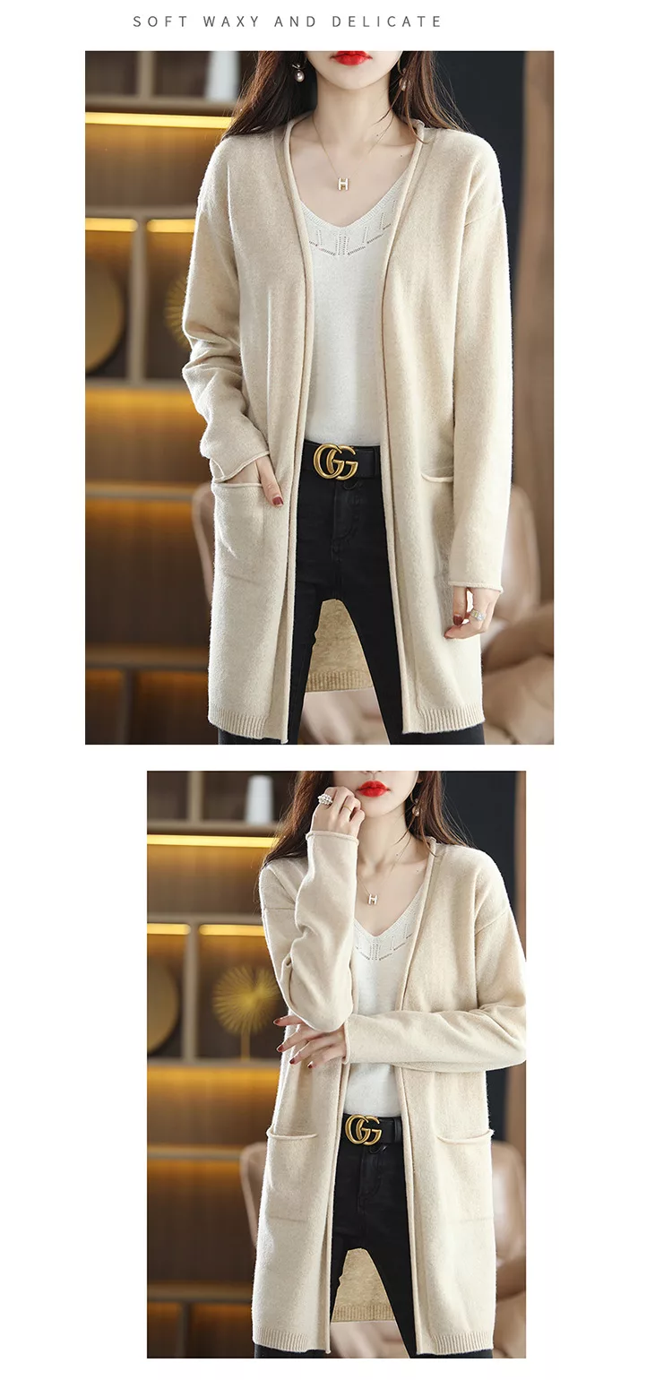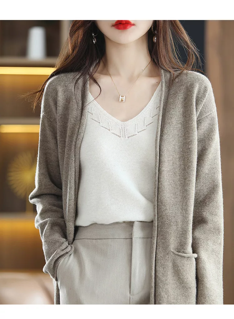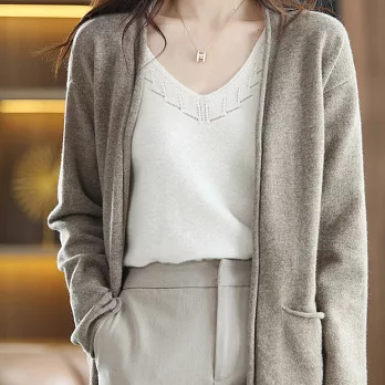 秋冬新款披肩大V針織無扣外搭慵懶毛衣長版外套上衣#