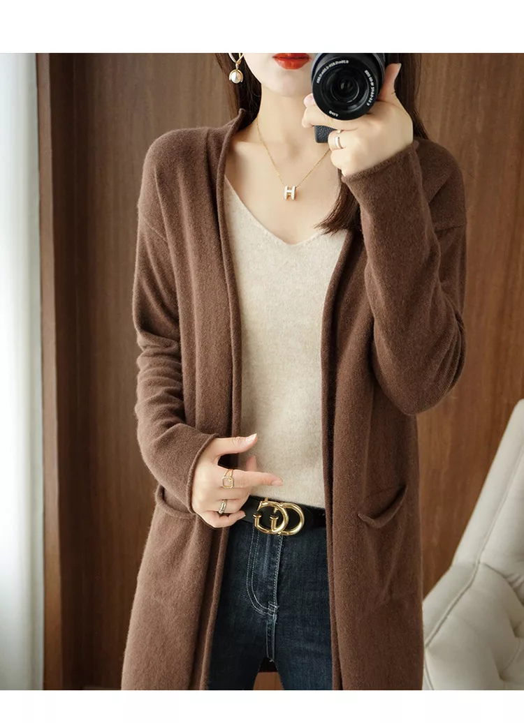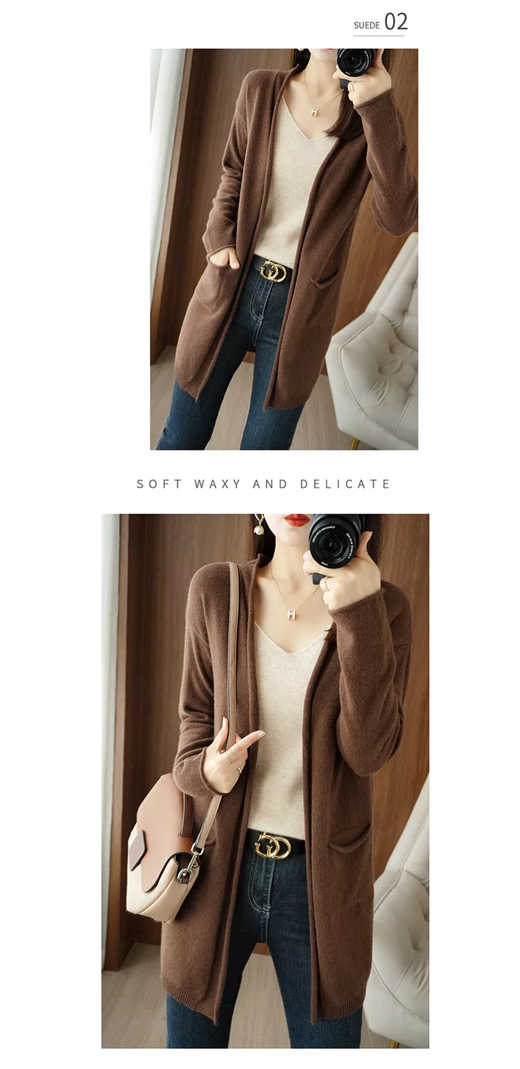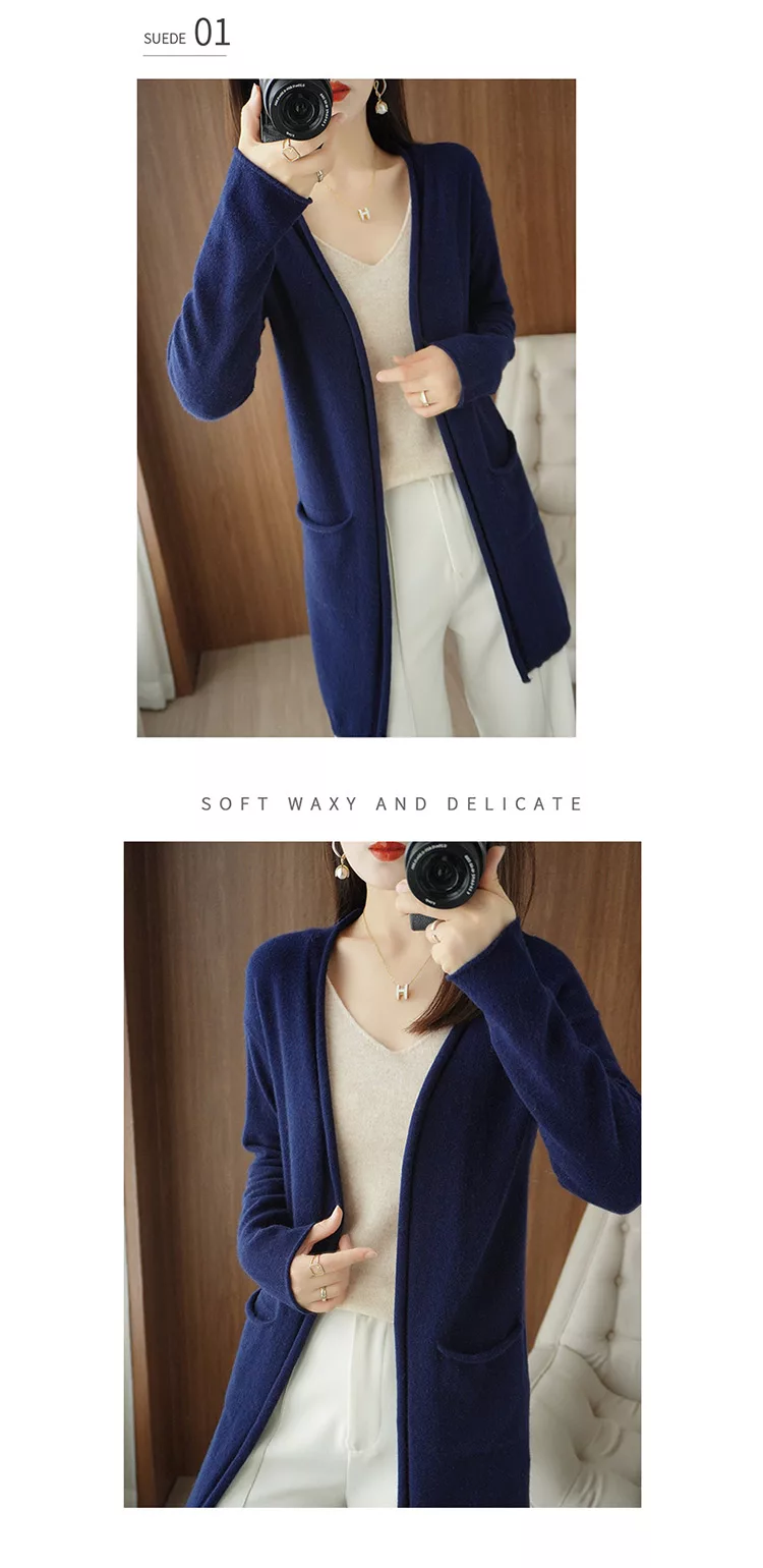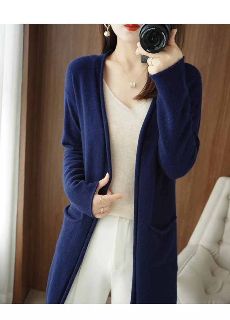 秋冬新款披肩大V針織無扣外搭慵懶毛衣長版外套上衣#