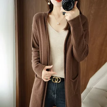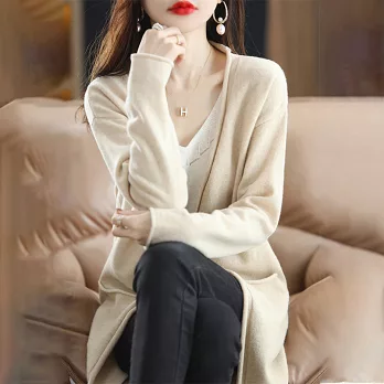 【ACheter】 秋冬新款披肩大V針織無扣外搭慵懶毛衣長版外套上衣# 114210 FREE 駝色