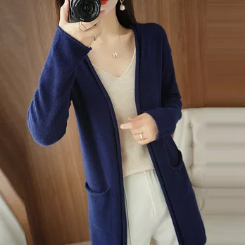 【MsMore】 復古愛心緹花圓領長袖針織寬鬆毛衣中長版外套# 113849 FREE 藏青