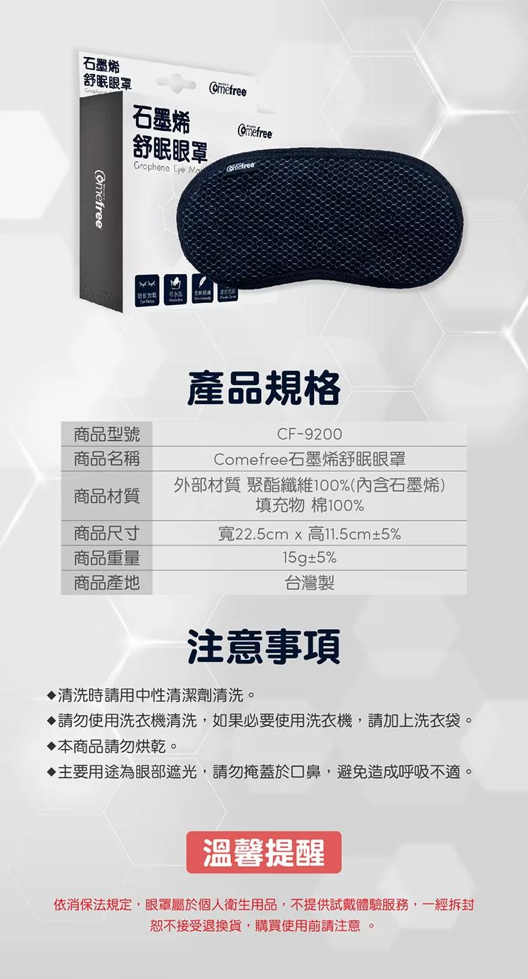 【Comefree康芙麗】石墨烯舒眠眼罩 台灣製