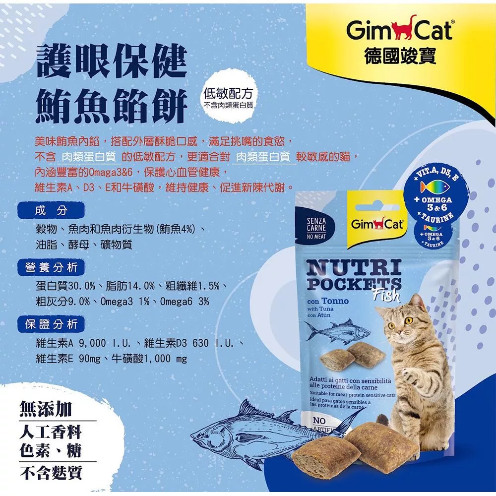 ★ 美味鮪魚內餡,搭配外層酥脆口感,滿足挑嘴的食慾,更適合對肉類蛋白質較敏感的 貓。
