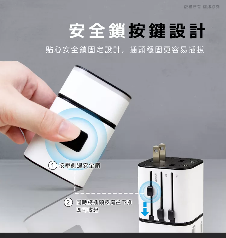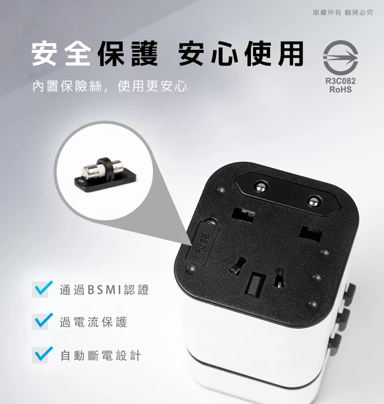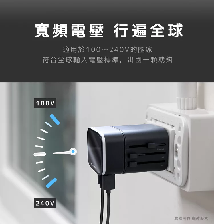 【太星電工】氮化鎵PD20W旅行用插座/3USB(多國轉換) AA303
