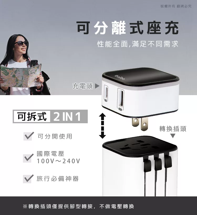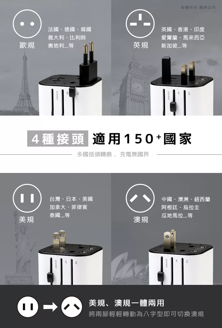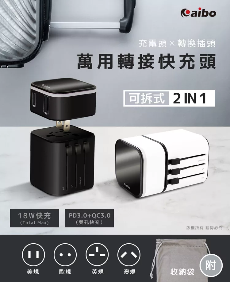 aibo QC3.0+PD20W快充 萬國旅行充電器