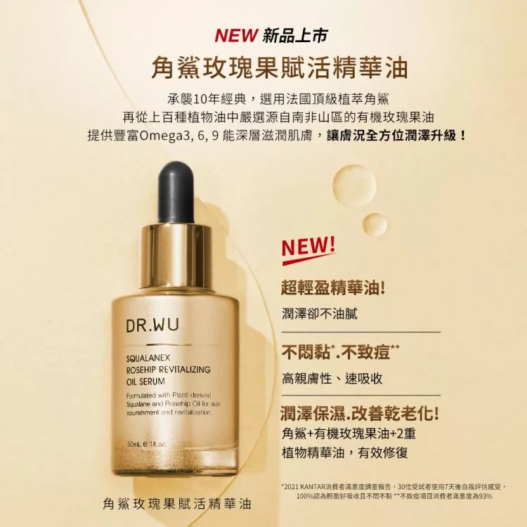 DR.WU 角鯊玫瑰果賦活精華油30ML