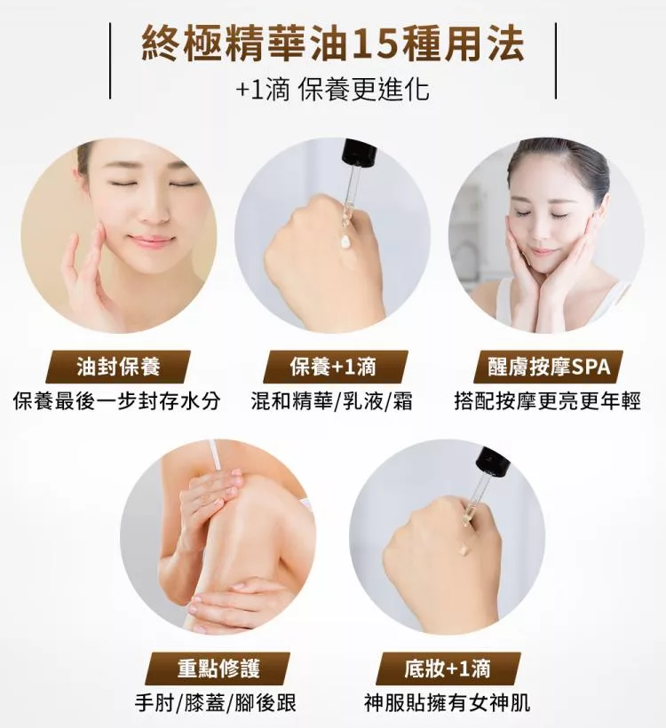 每天早晚使用,臉部清潔後,取適量精華油於手掌心,輕輕按壓於臉部及頸部肌膚。