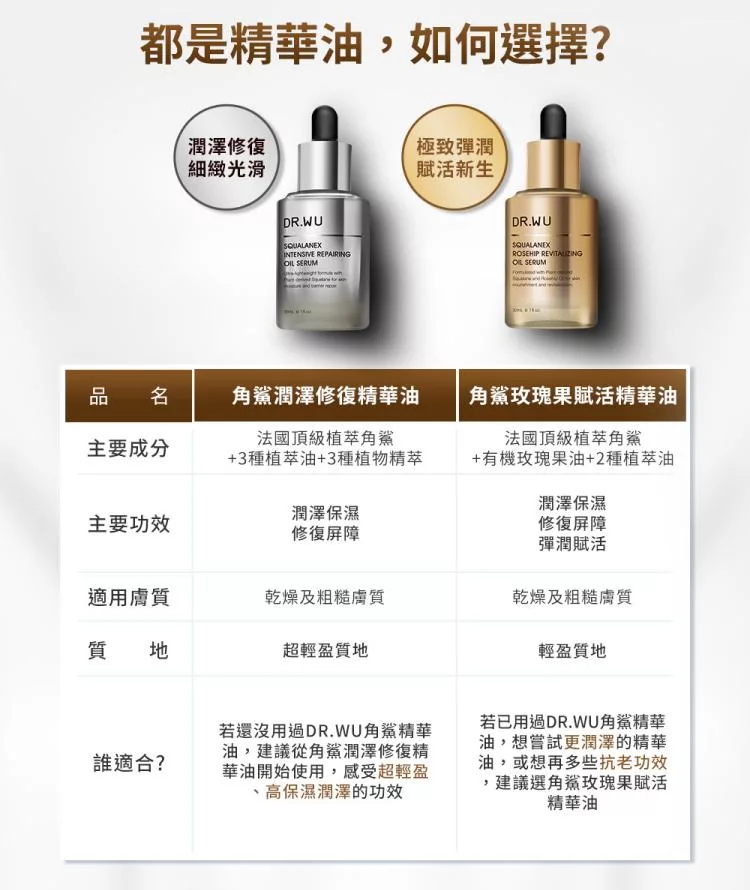 卸妝、清潔→化妝水→角鯊玫瑰果賦活精華油→乳液、面霜→防曬隔離