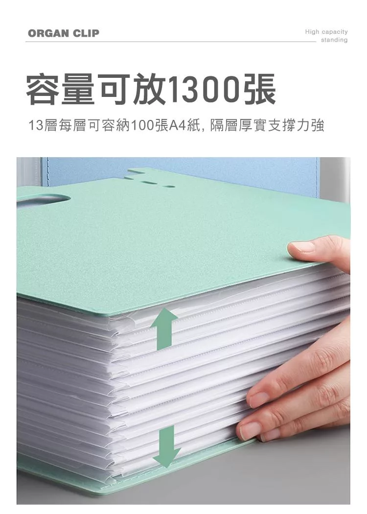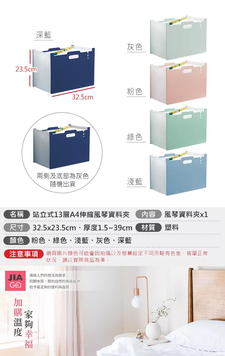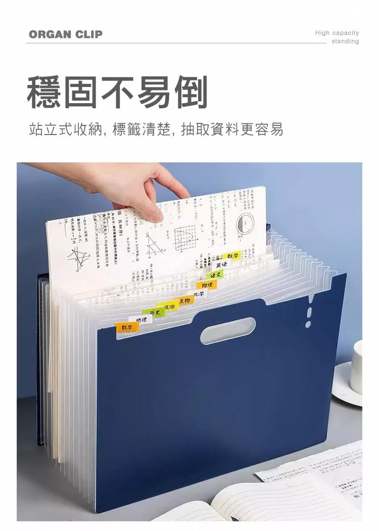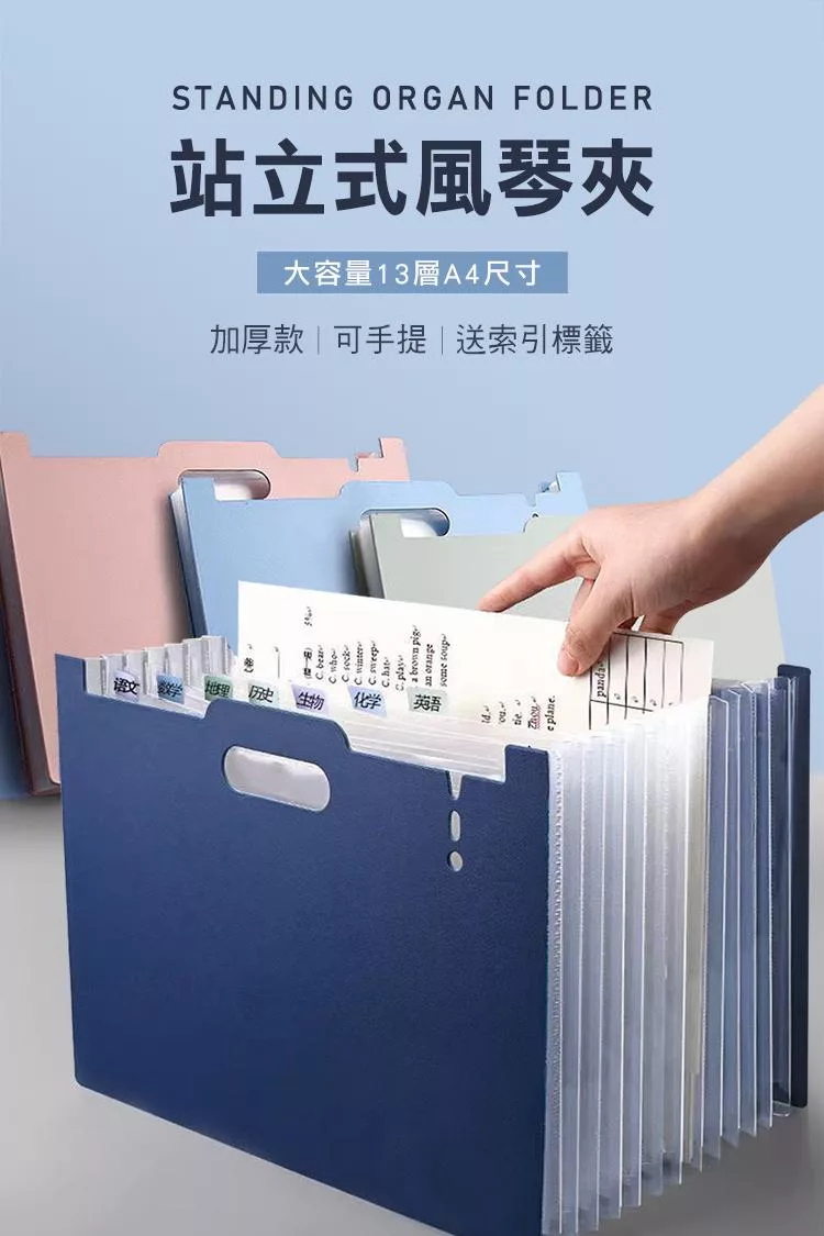 【E.dot】站立式13層A4伸縮風琴資料夾 深藍