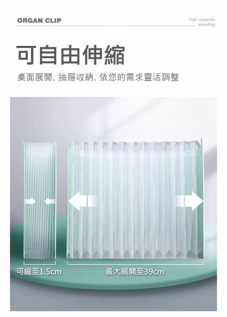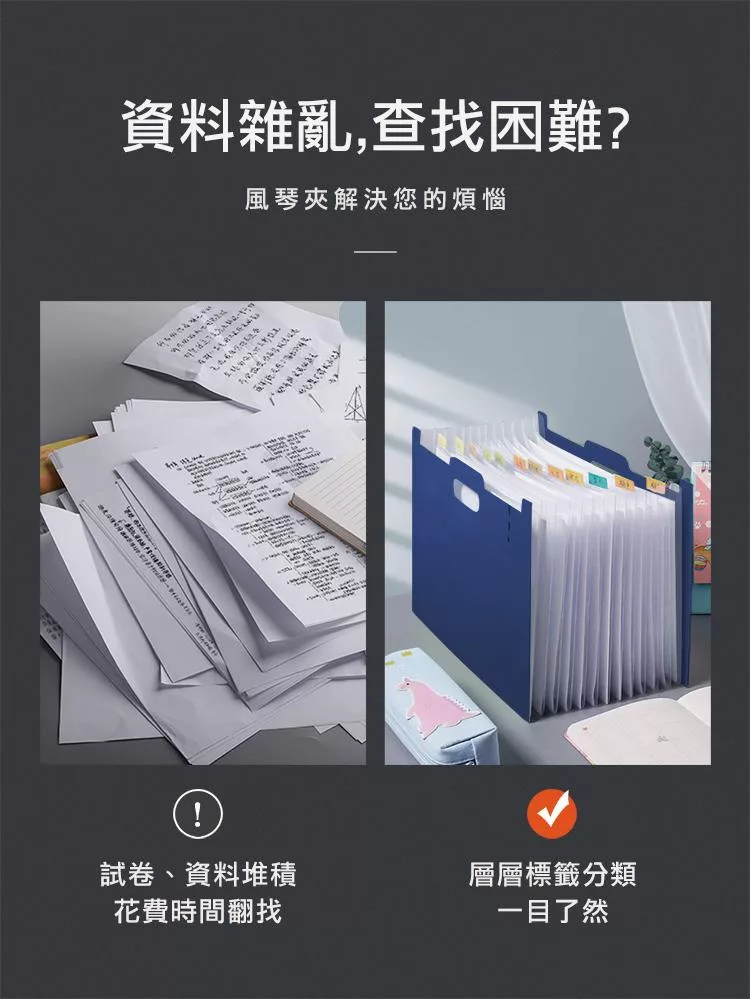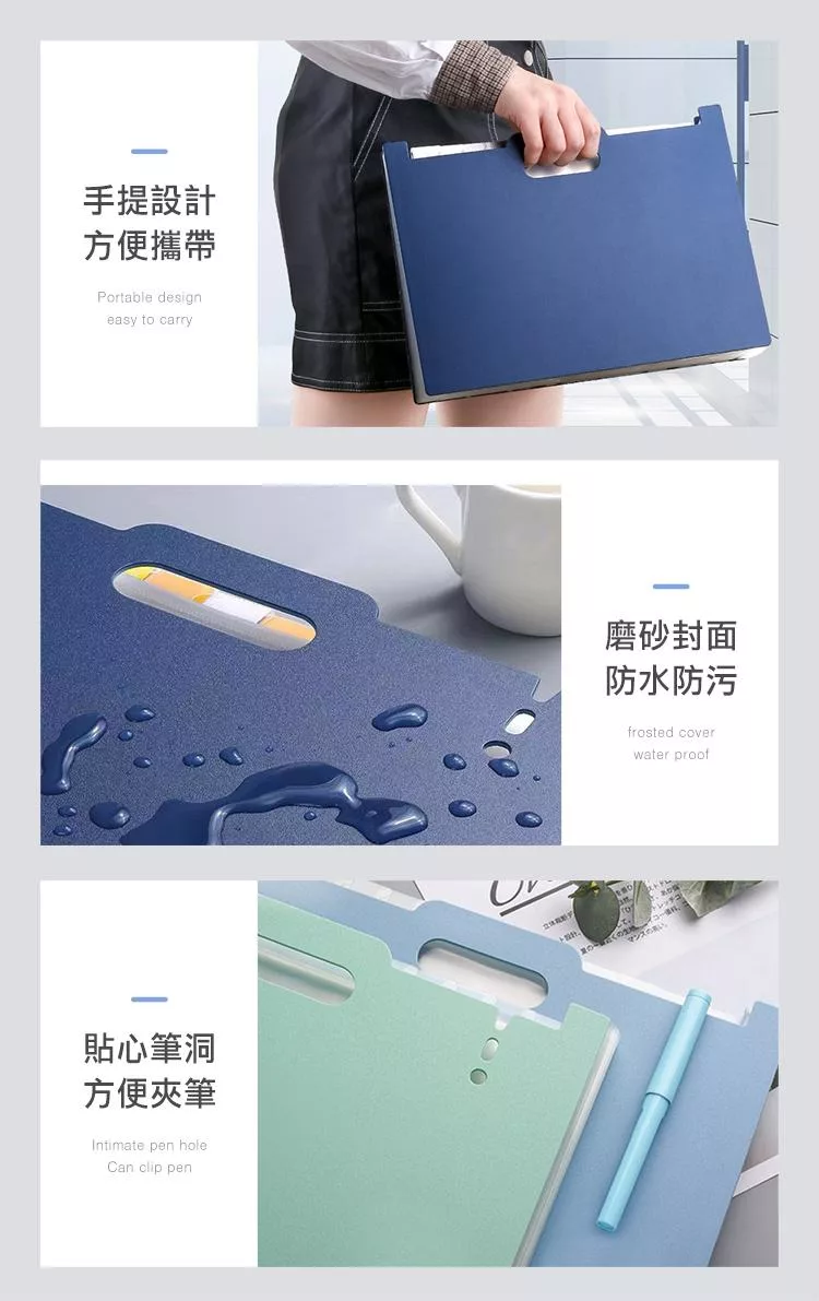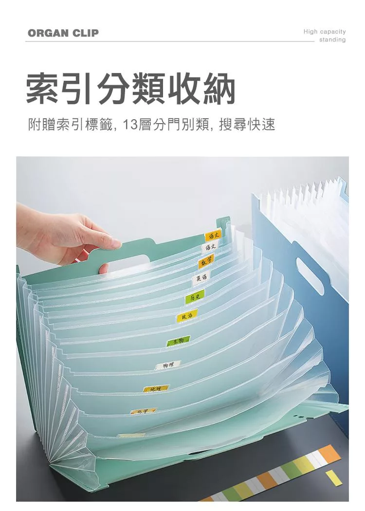 【E.dot】站立式13層A4伸縮風琴資料夾 深藍