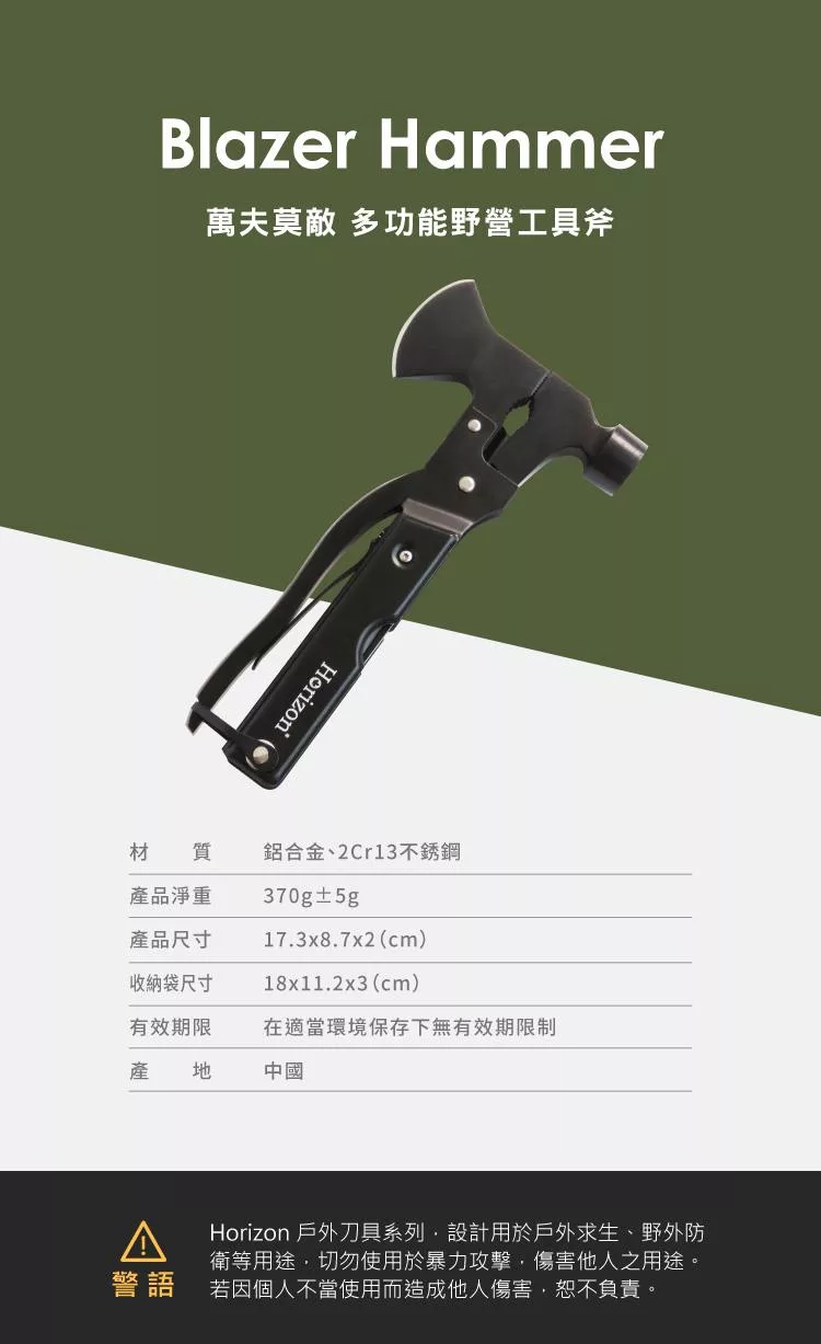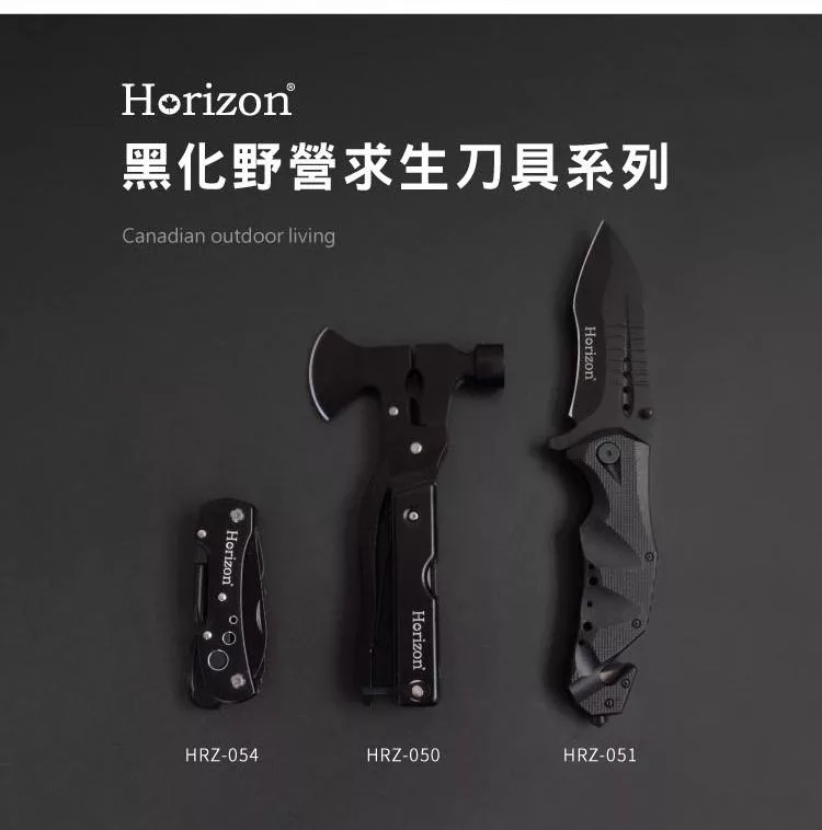 Horizon 戶外刀具系列,設計用於戶外求生、野外防衛等用途,切勿使用於暴力攻擊,傷害他人之用途。若因個人不當使用而造成他人傷害,恕不負責。