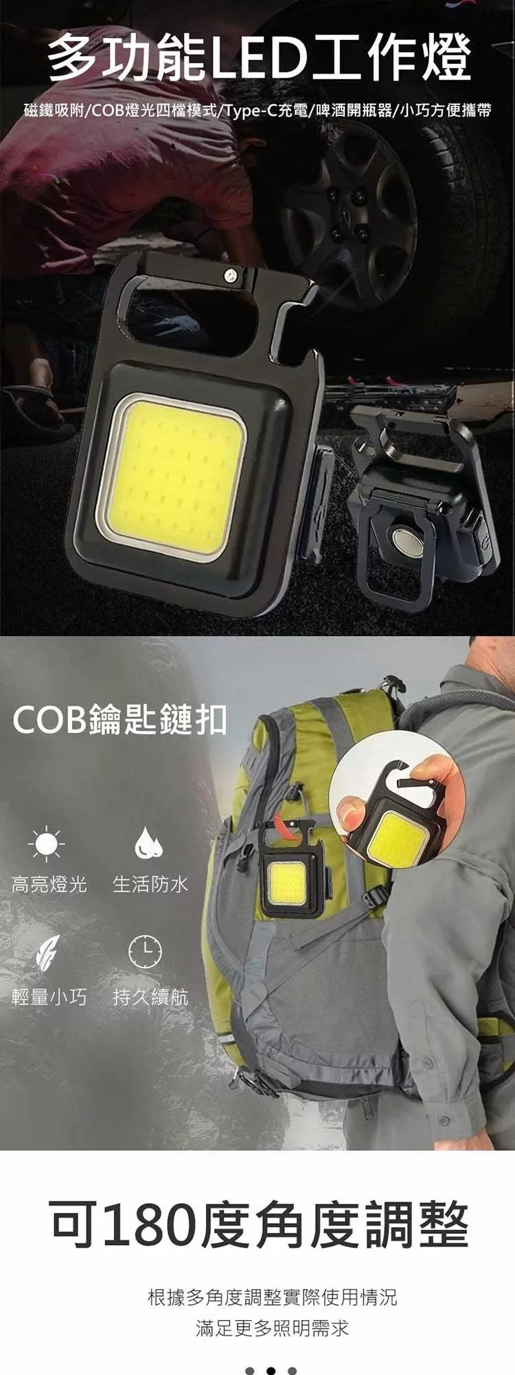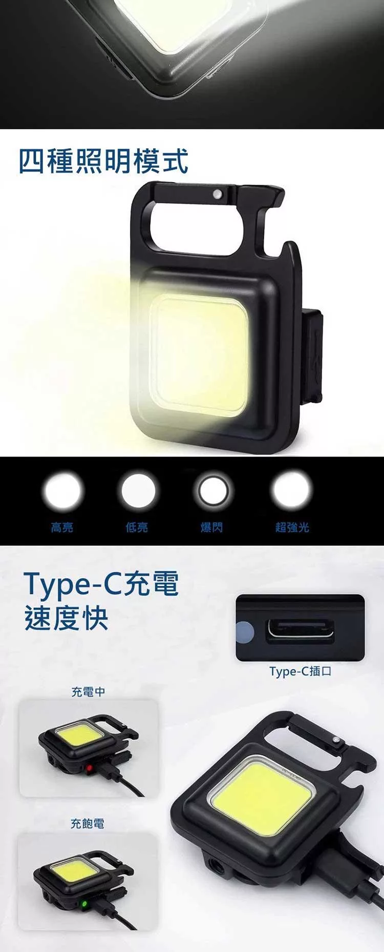 鑰匙扣隨身燈 磁吸/可掛式COB燈 手電筒(USB充電) 方形扣款