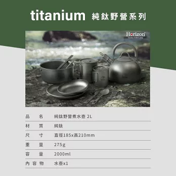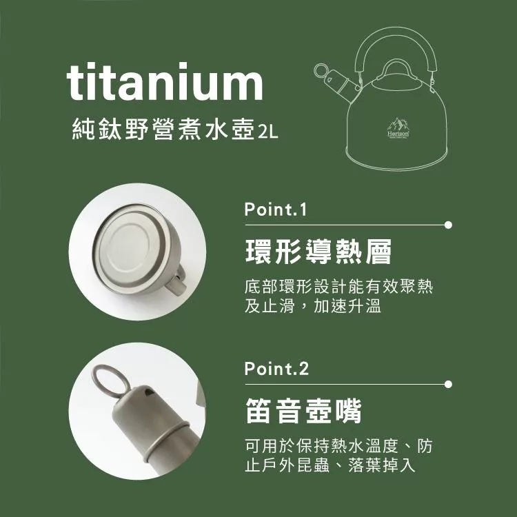純鈦戶外野營餐煮水壺2L