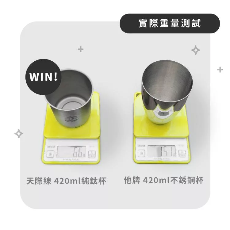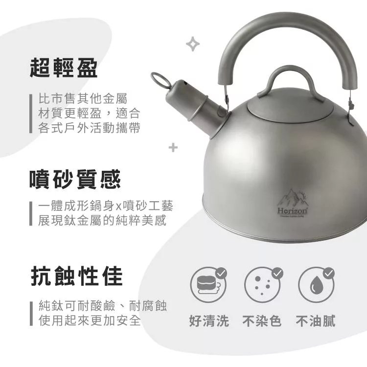 適合戶外活動攜帶。抗蝕性佳,不易生鏽、不易沾染油垢,無金屬異味,品嚐飲品原始的美味,耐熱耐冷,可直火加熱燒水。