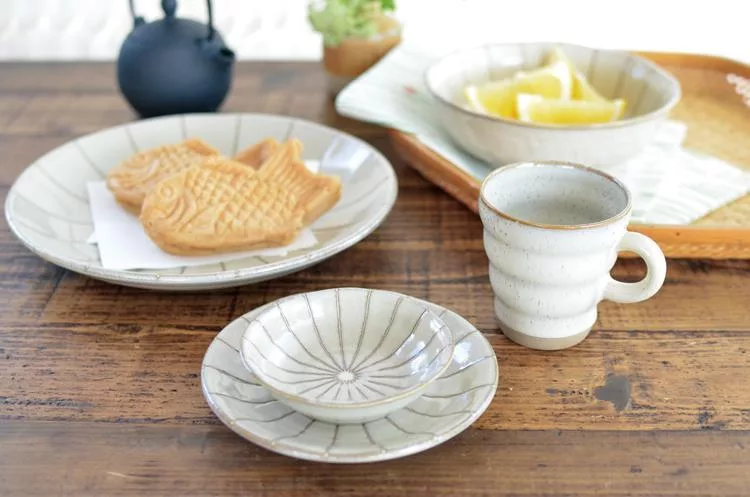 【日本野田】美濃燒|潑水十草 陶瓷淺盤11.2cm ‧ 淺灰