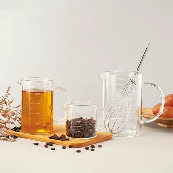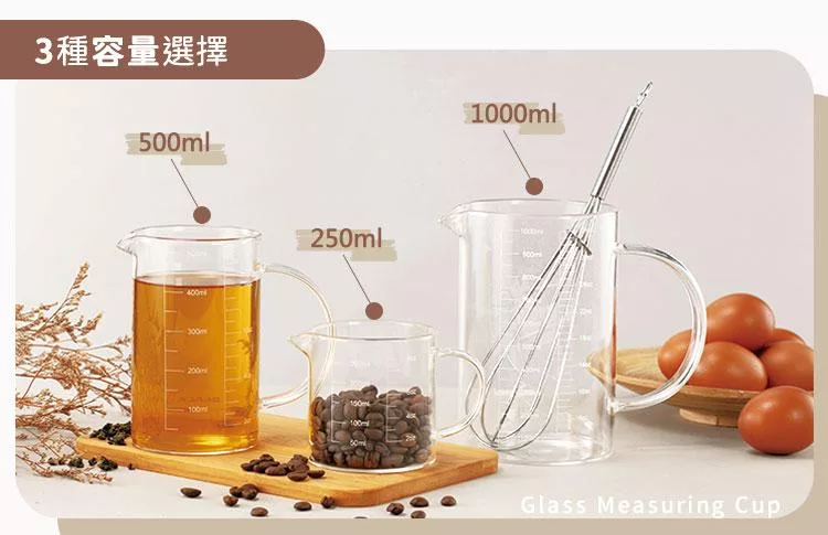 台灣製多功能耐熱玻璃量杯350ml(雙色刻度)