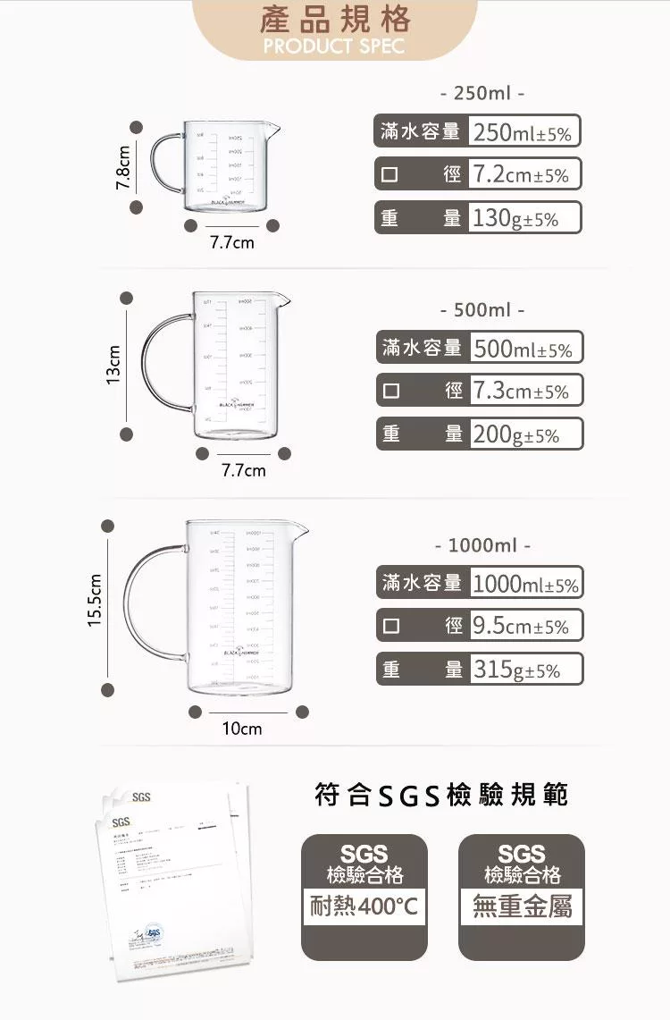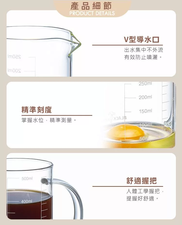 品名:Black Hammer 簡約 耐熱玻璃量杯500ml