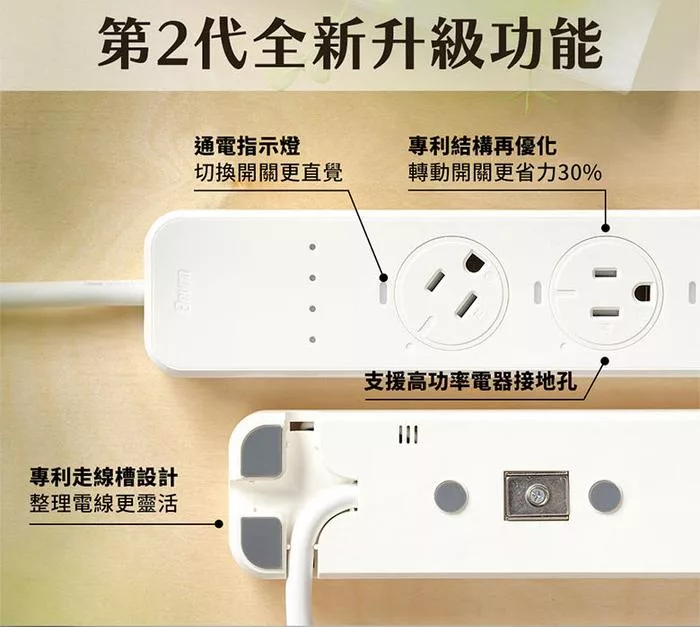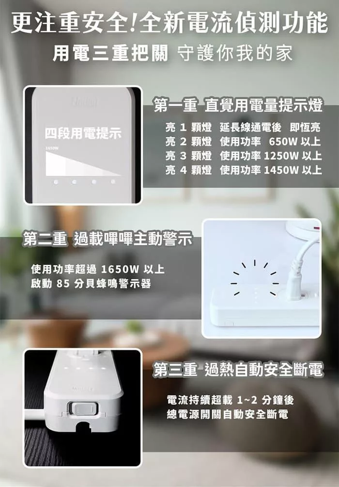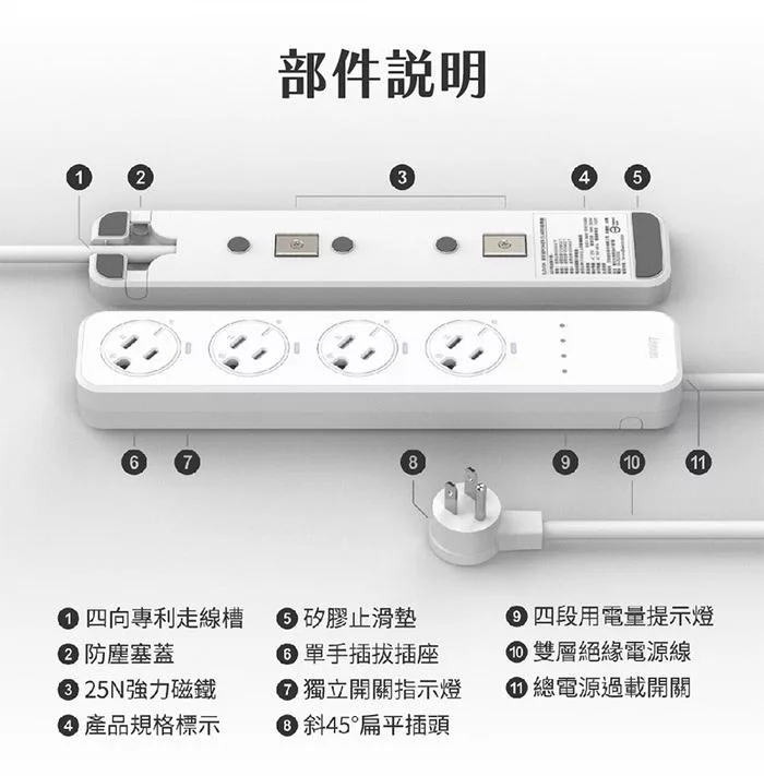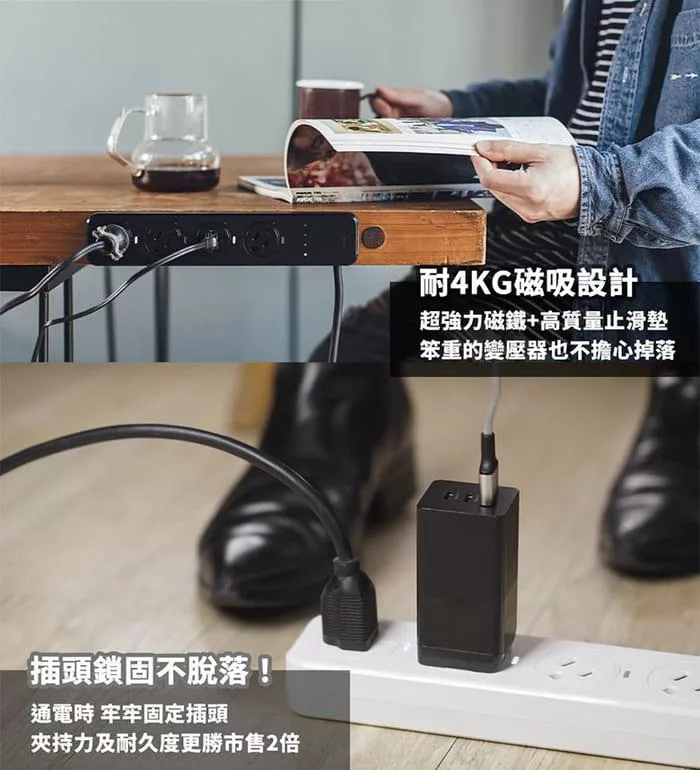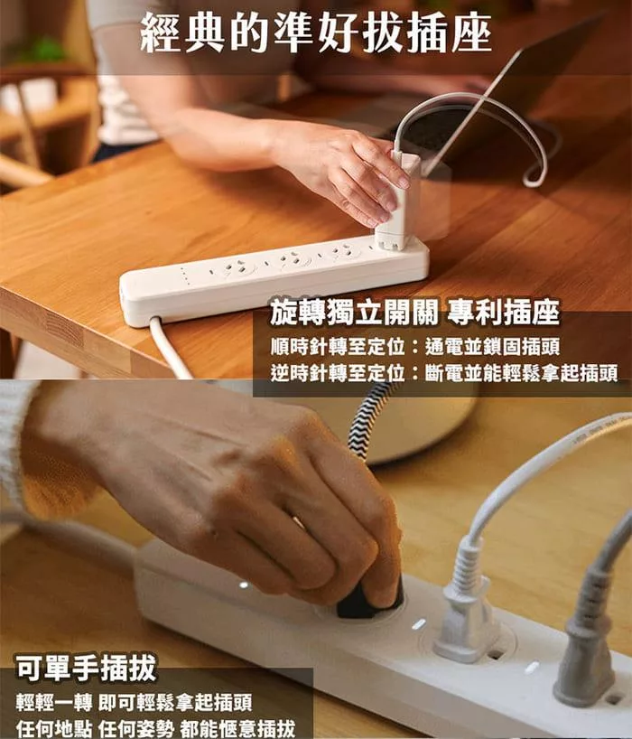aibo 淨.極簡 3孔4插 USB延長線-1.8米