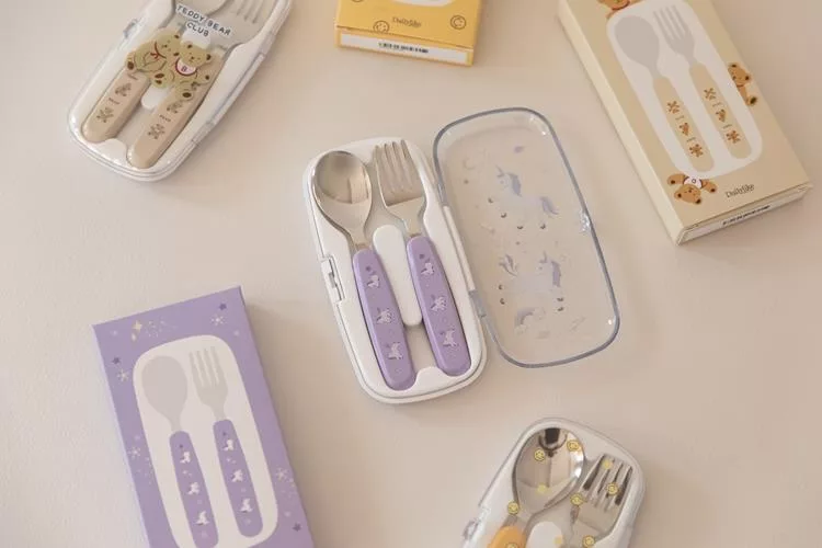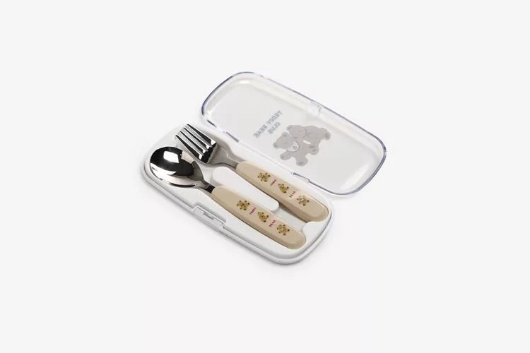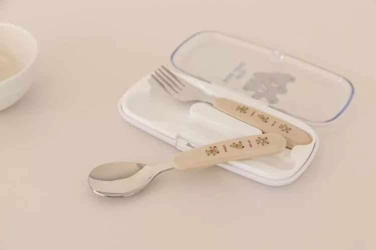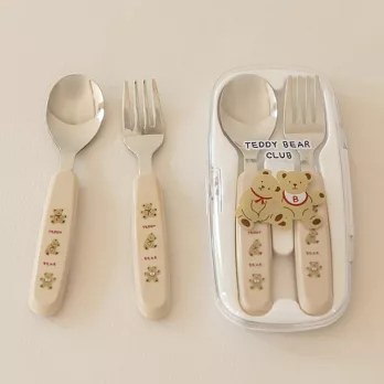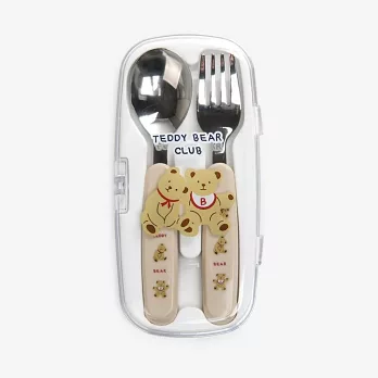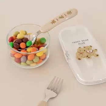 【韓國Dailylike】304不鏽鋼叉子+湯匙2件組(附收納盒) ‧ 泰迪熊