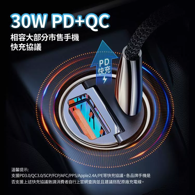 【安伯特】車用快充PD+QC3.0 (國家認證 一年保固) 車充 PD快充 車用充電器 水晶黑