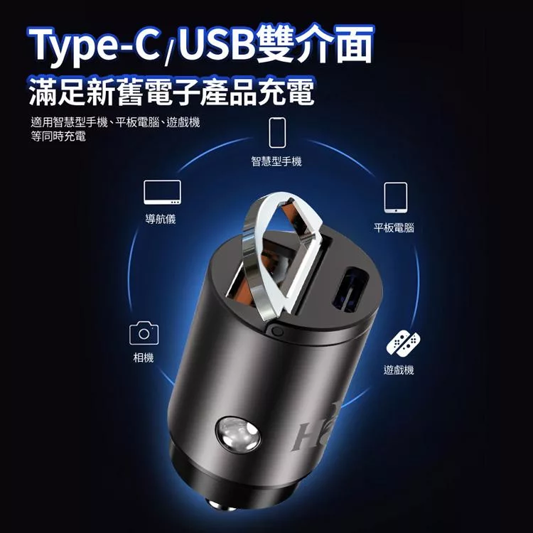 【Philips 飛利浦】30W Type-C+Type-A PD+QC 2孔車用充電器 (DLP3520C)