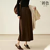 【初色】純色鬆緊腰直筒後開衩半身裙長裙-共2色-37860(M-2XL可選) 2XL 咖啡色