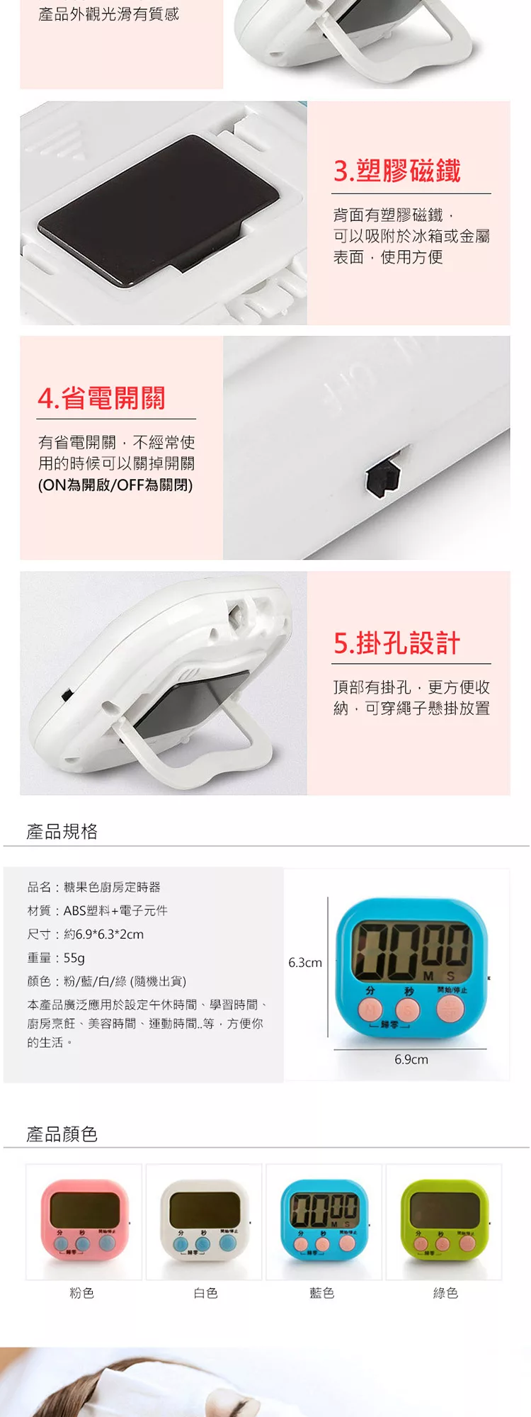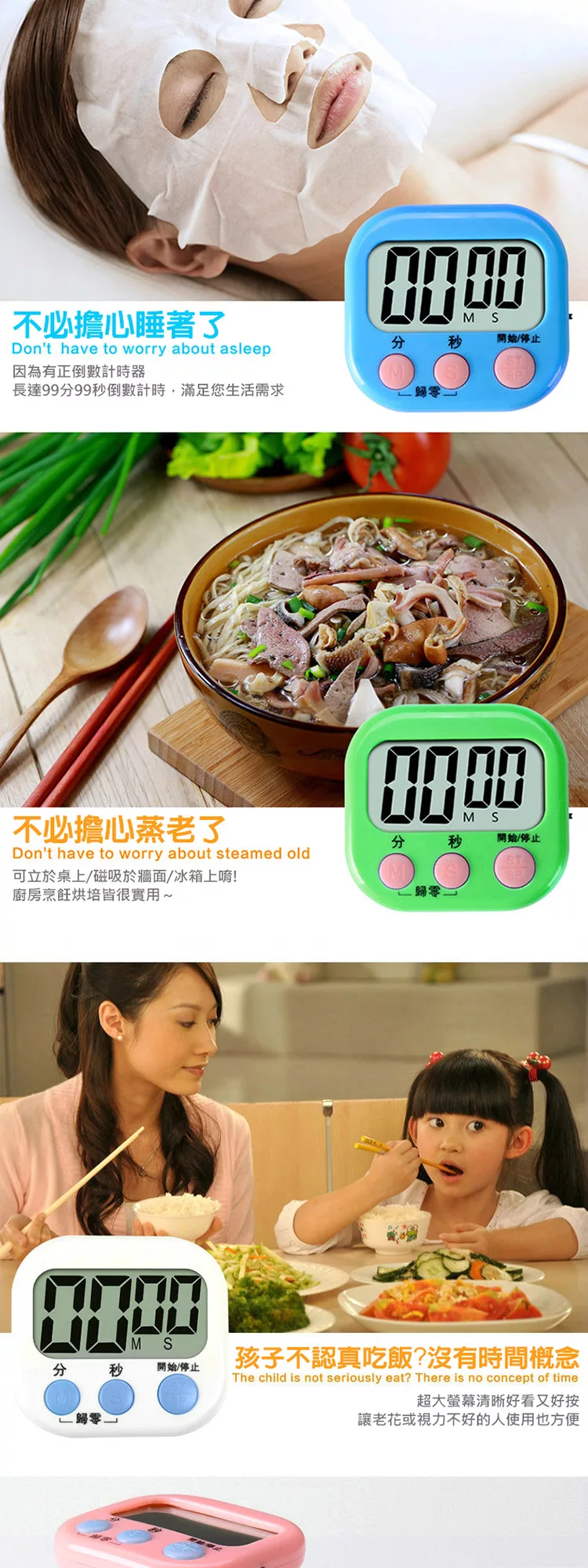 記憶功能:再次計時後,不關機/不重新設定的情況下,再按下開始鍵就可以再次啟動上次的定時設定,方便又快速。