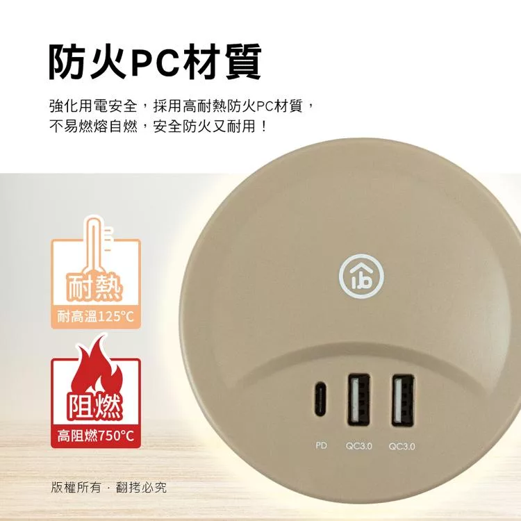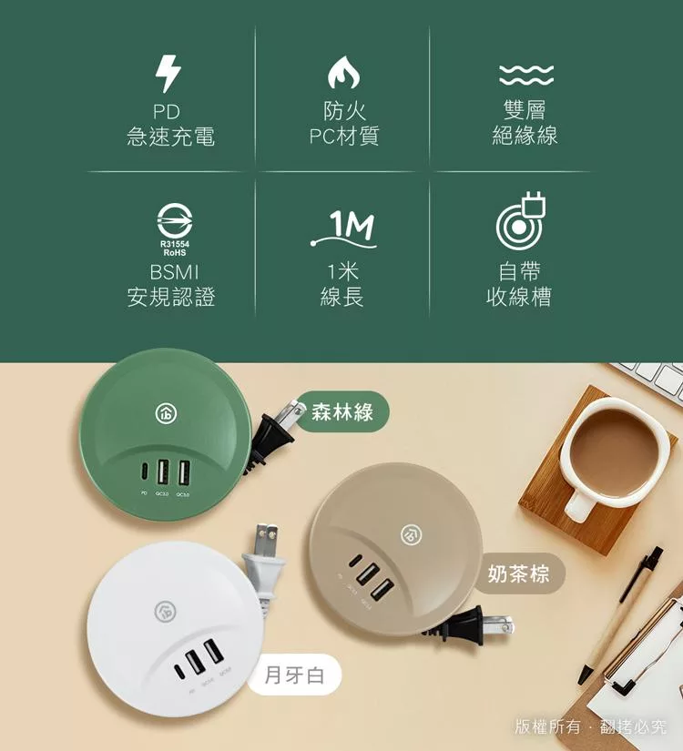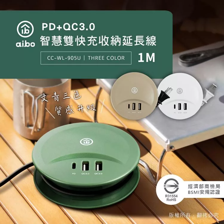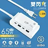 aibo PD65W 氮化鎵GaN PD+QC3.0雙閃充四孔 USB充電延長線-1.5M