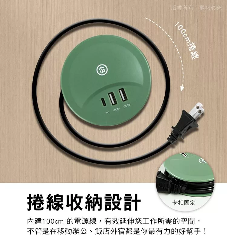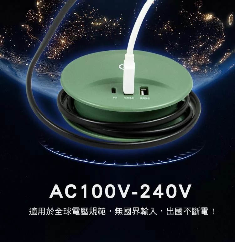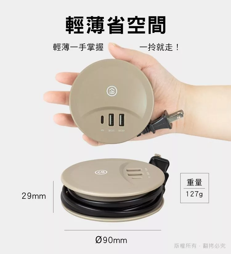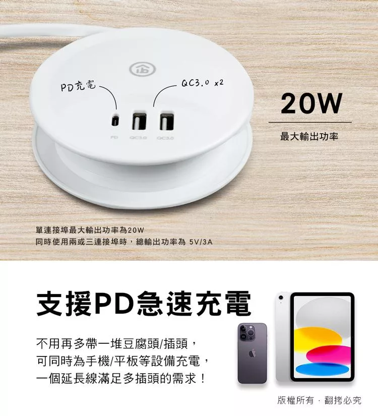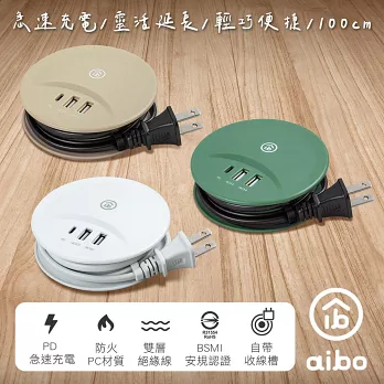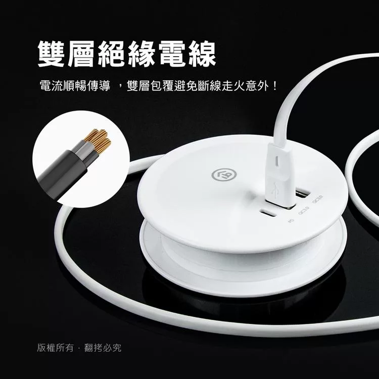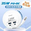 氮化鎵GaN PD35W速充型 USB延長線充電器 PD+QC 轉盤收線充電器 國際電壓(50cm)-經典白