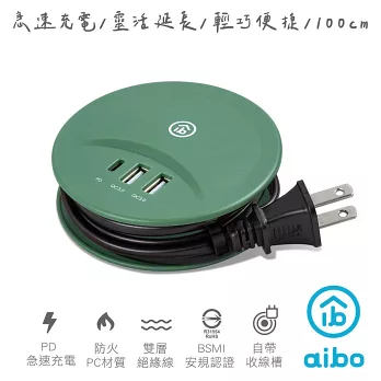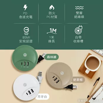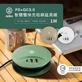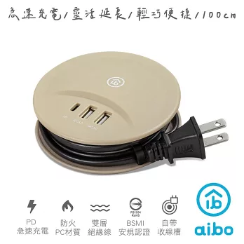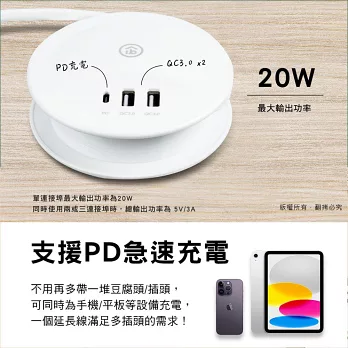 氮化鎵GaN PD35W速充型 USB延長線充電器 PD+QC 轉盤收線充電器 國際電壓(50cm)-經典白