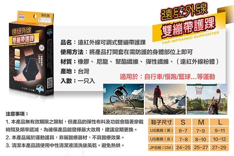 成功SUCCESS 石墨烯+遠紅外線可調式護腕 S5091 台灣製