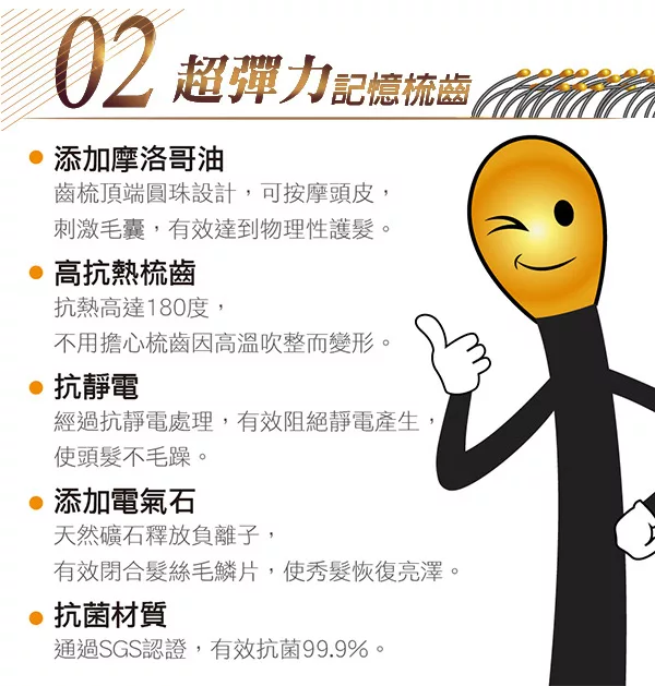 【Pandora’s Beauty Box】Lasen3D彈性抗糾結梳_按摩梳/吹髮梳/梳子/髮梳 摩卡棕 (New)