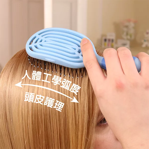 【Pandora’s Beauty Box】Lasen3D彈性抗糾結梳_按摩梳/吹髮梳/梳子/髮梳 長春花藍