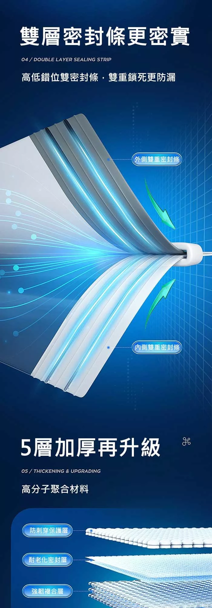 材質:PE+PA(新型高分子材料,韌性加倍,嚴防漏氣)