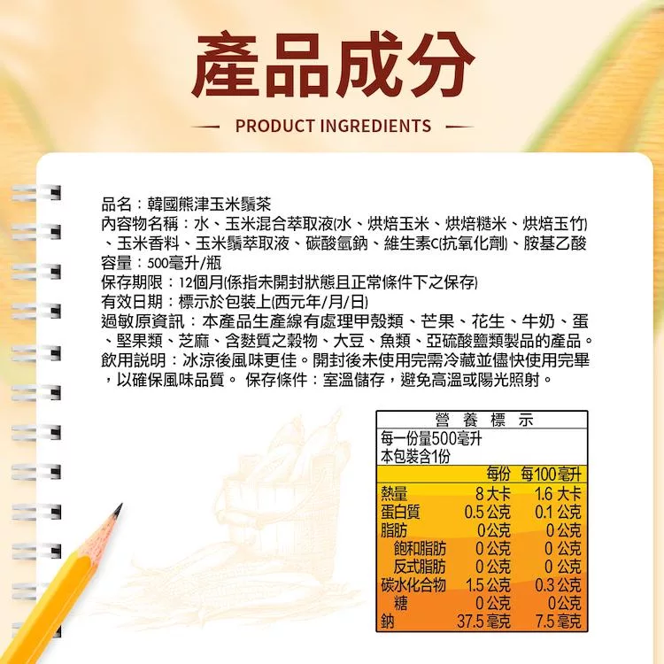 選用韓國珍貴玉米原料,促進新陳代謝,調節生理機能,並具有生津止渴之用
