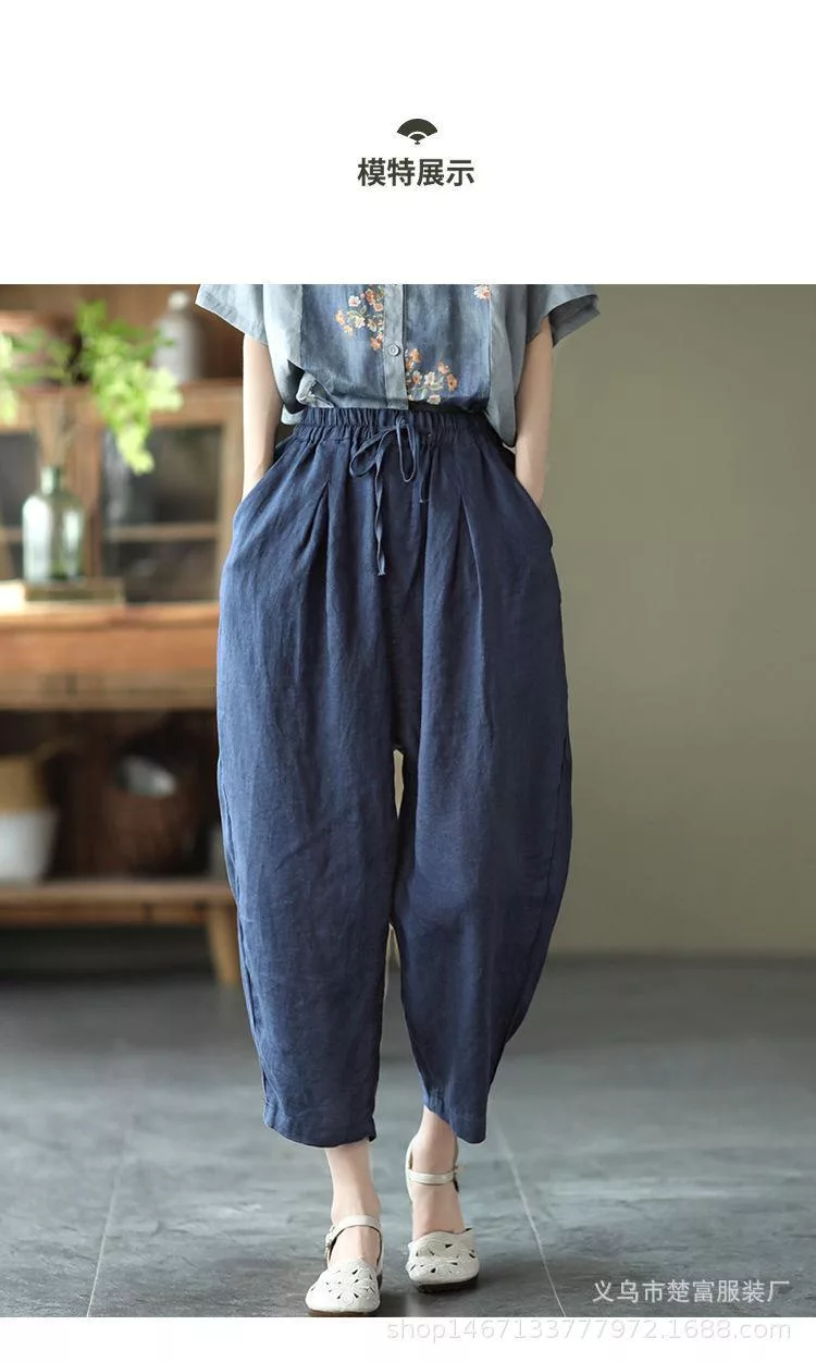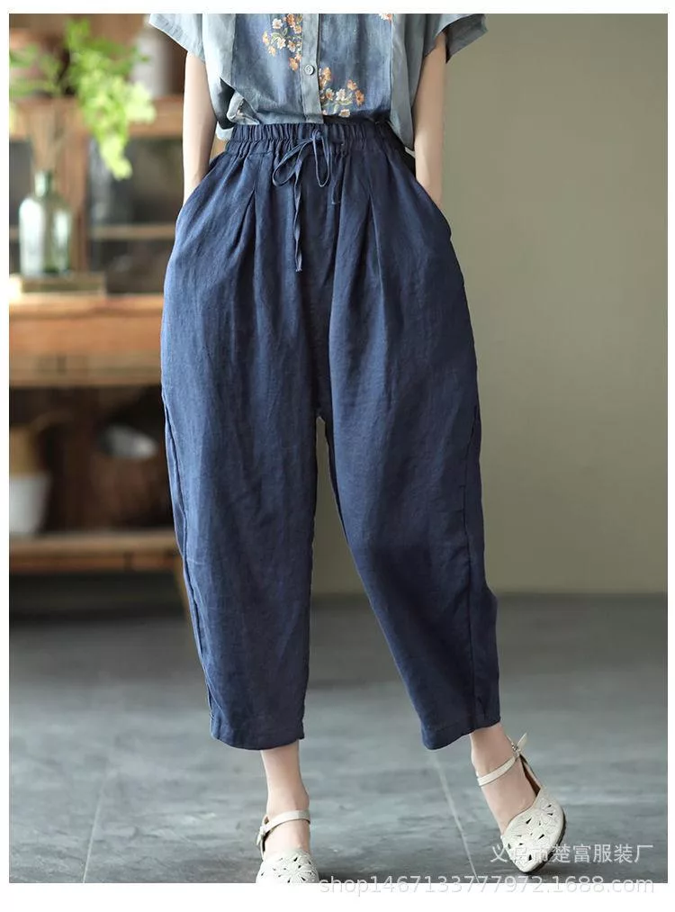 【Jilli~ko】文藝棉麻感休閒蘿蔔九分褲 J8203  FREE 深藍色