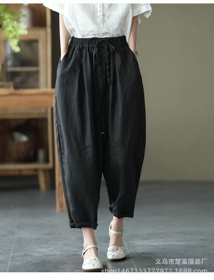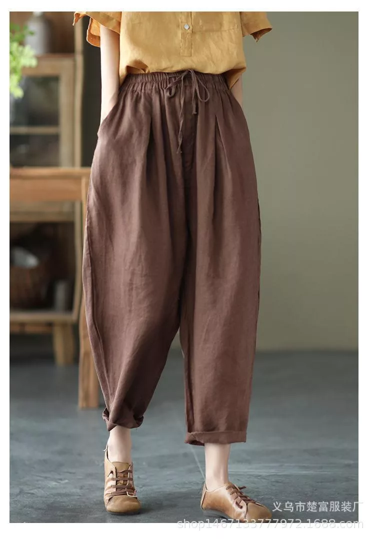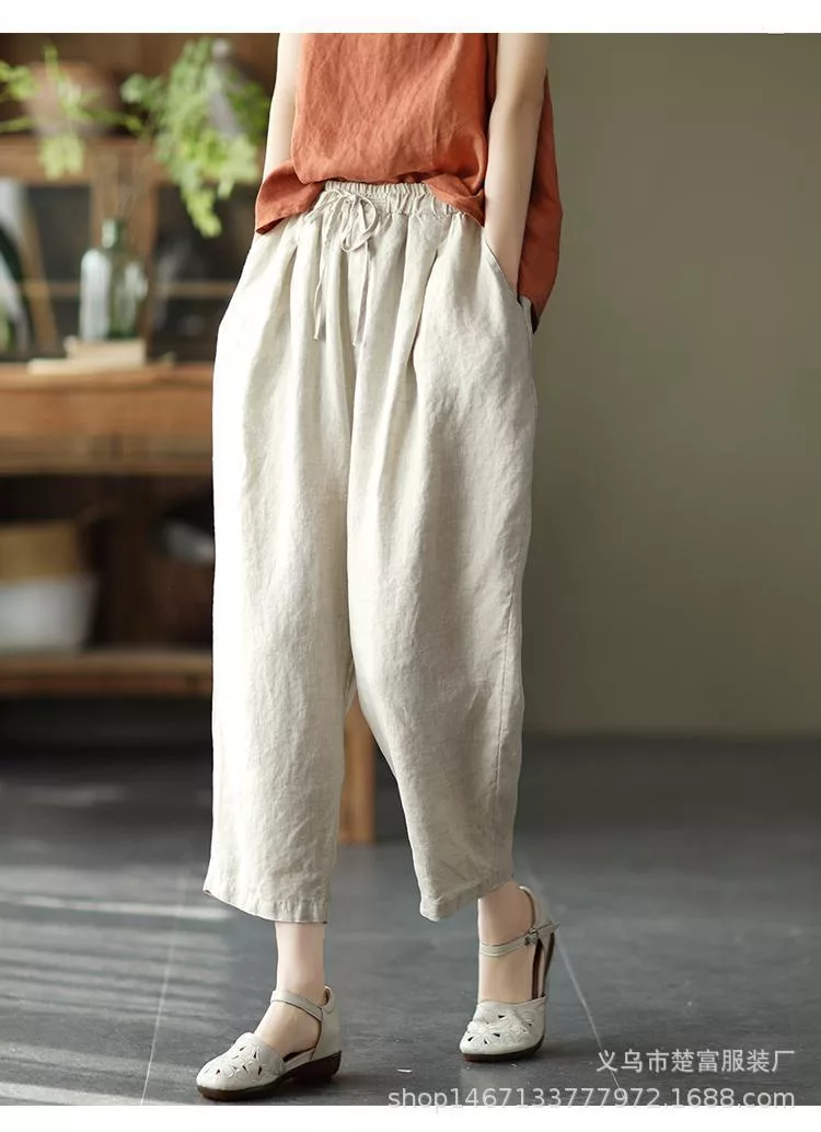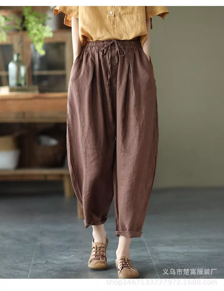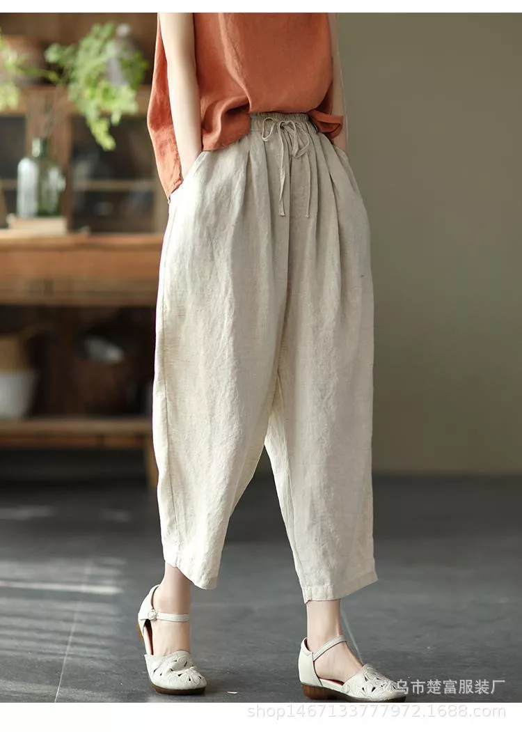 【慢。生活】文藝復古鬆緊腰繫帶休閒棉麻褲 2245  FREE 綠色