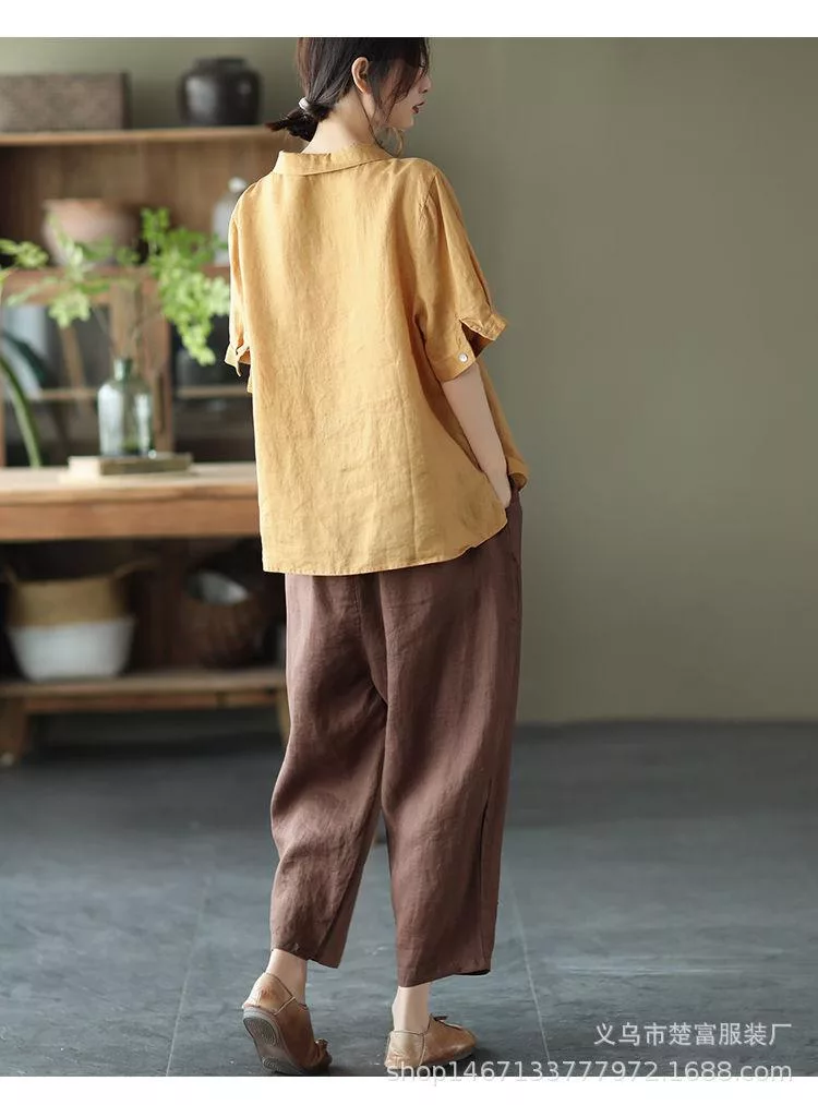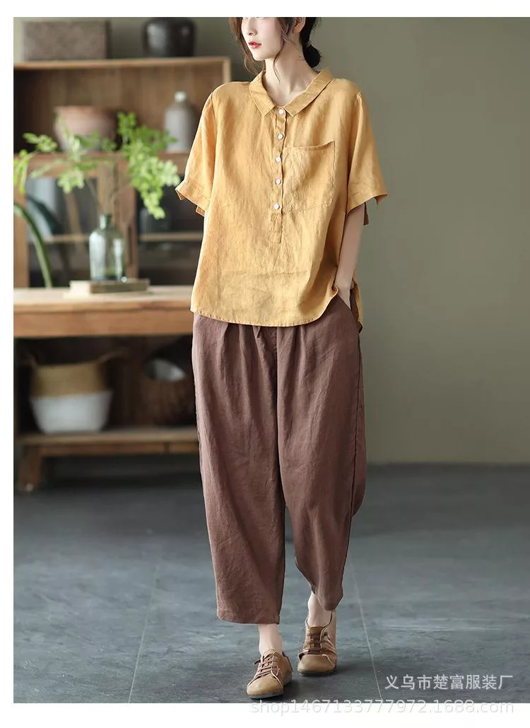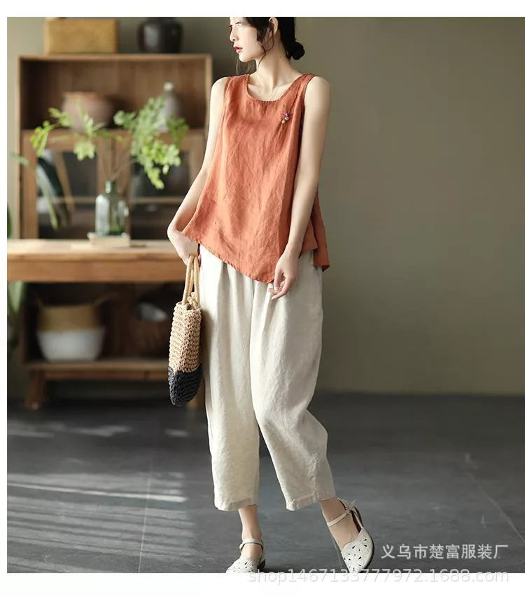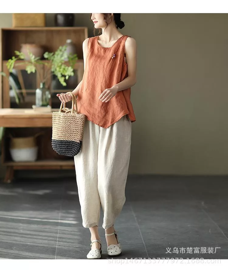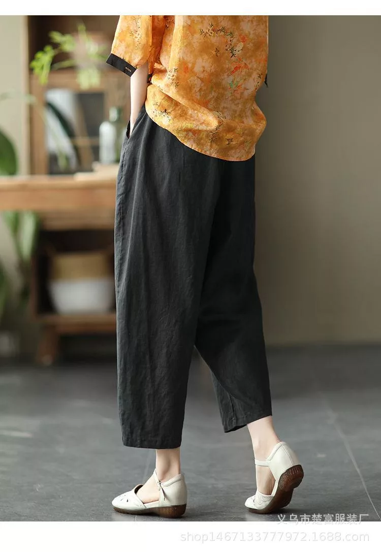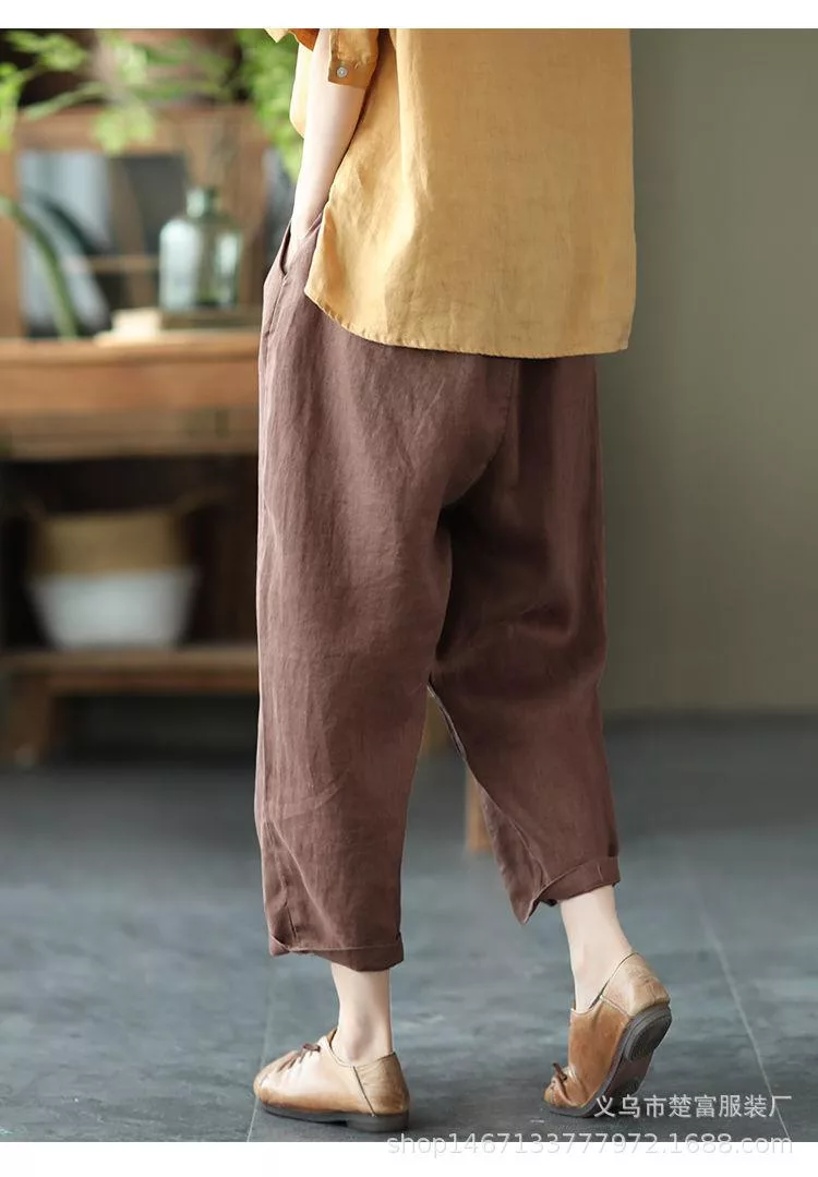 【慢。生活】文藝復古鬆緊腰繫帶休閒棉麻褲 2245  FREE 綠色