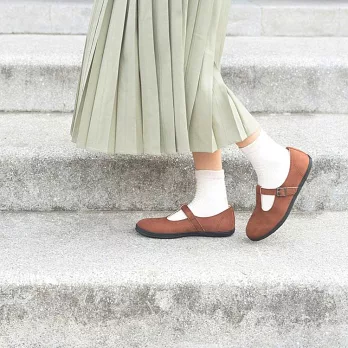 【GREEN PHOENIX】女 包鞋 便鞋 平底鞋 全真皮 寬楦 磨砂 復古 EU35 棕色