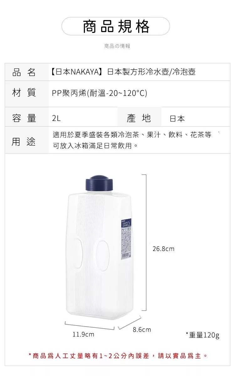 商品名稱:日本製方形冷水壺/冷泡壺2L