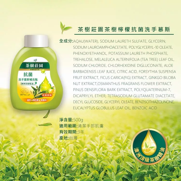 【茶樹莊園】抗菌洗手慕斯補充瓶(500g/入)-茶樹檸檬