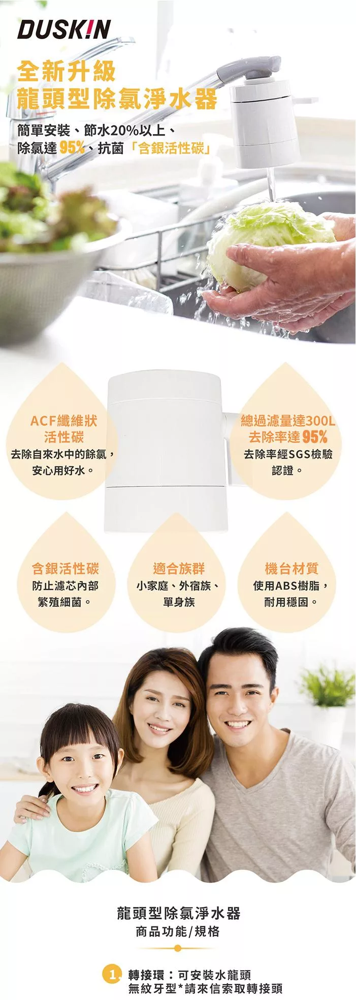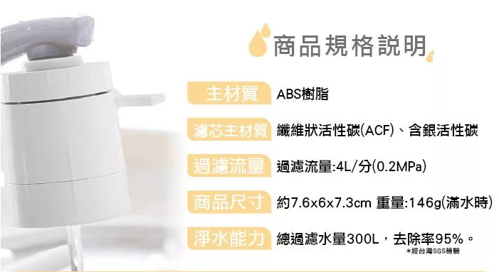 總過濾量達300L,去除率達95% : 去除率經SGS檢驗認證。