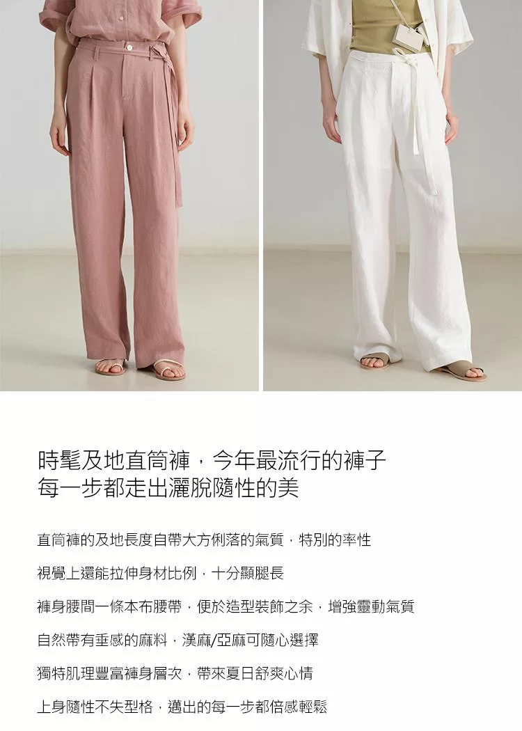 品名:100%漢麻亞麻時髦率性休閒拖地直筒褲- S104232019