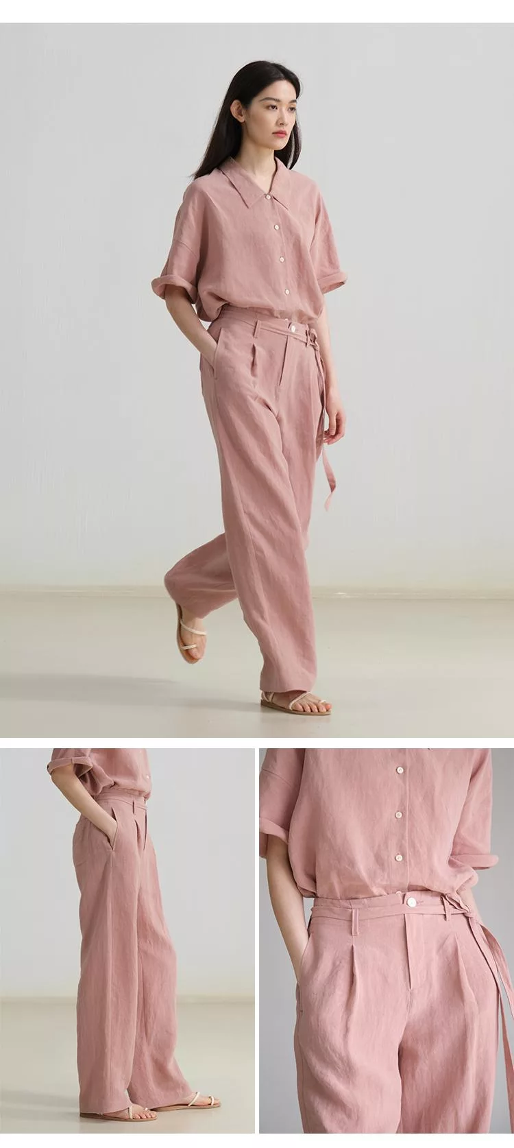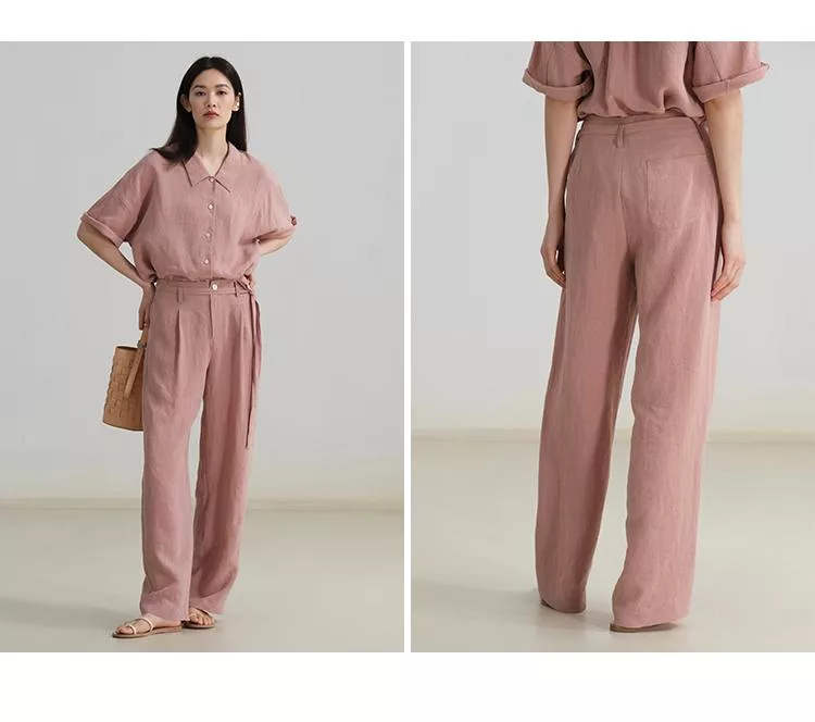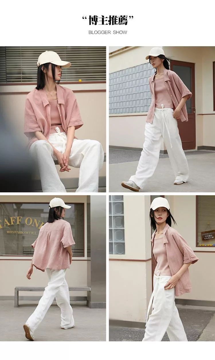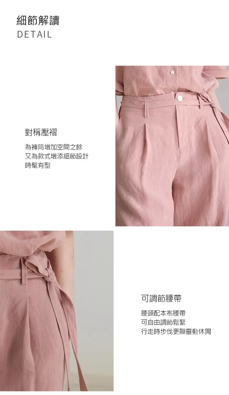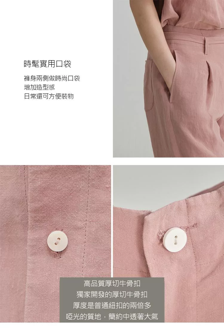 面料:象牙白-100%亞麻 暗粉色-100%大麻