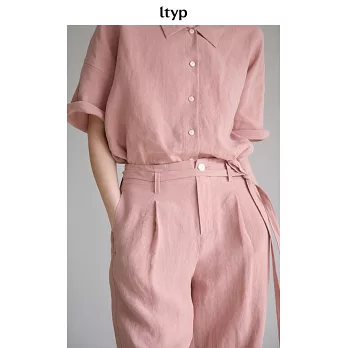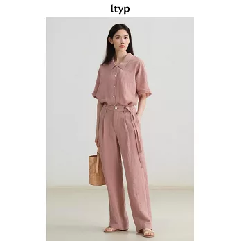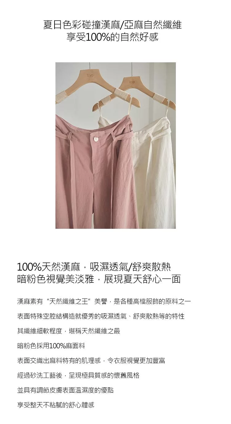 ltyp旅途原品 100%漢麻亞麻時髦率性休閒拖地直筒褲 M L XL L 暗粉色
